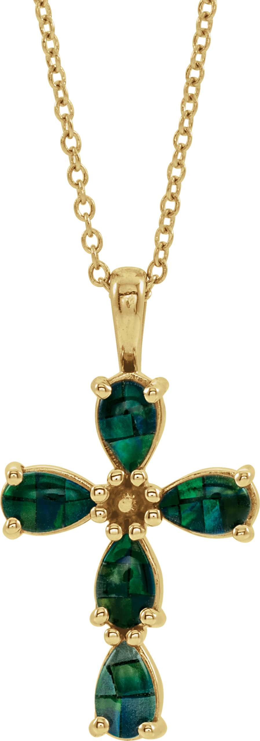 14K Yellow Cabochon Created Mosaic Opal Cross 16 18" Necklace Ref. 15318347