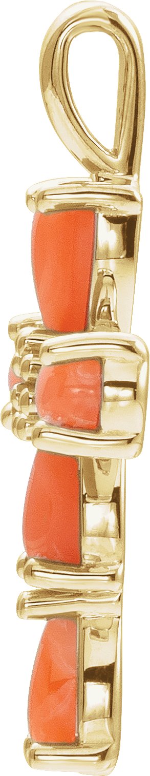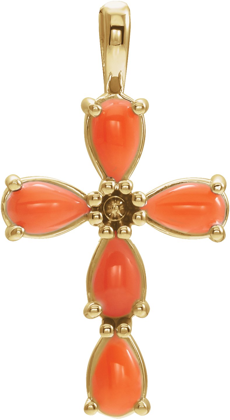 14K Yellow Cabochon Pink Coral Cross Pendant Ref. 15303494