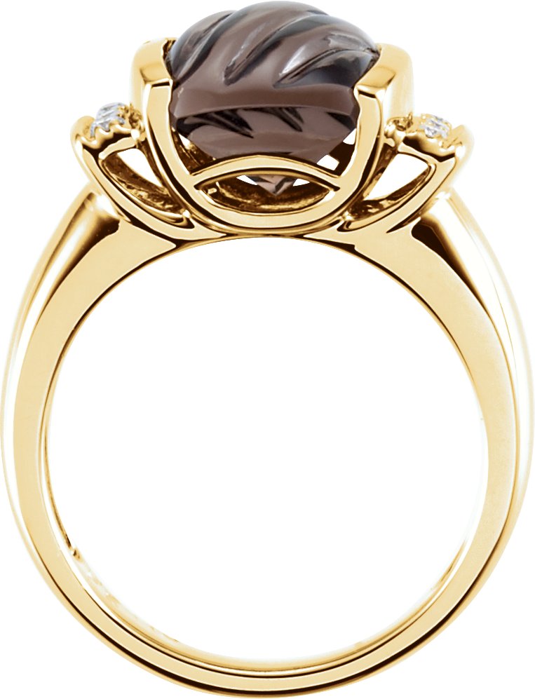 14K Yellow Carved Smoky Quartz and .06 CTW Diamond Ring
