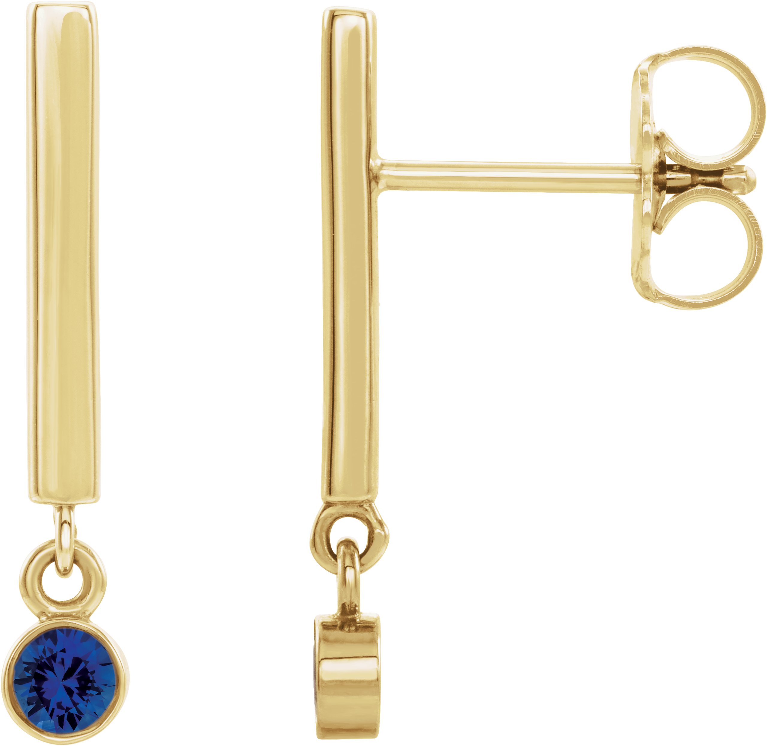 14K Yellow Chatham® Lab-Created Blue Sapphire Bar Earrings