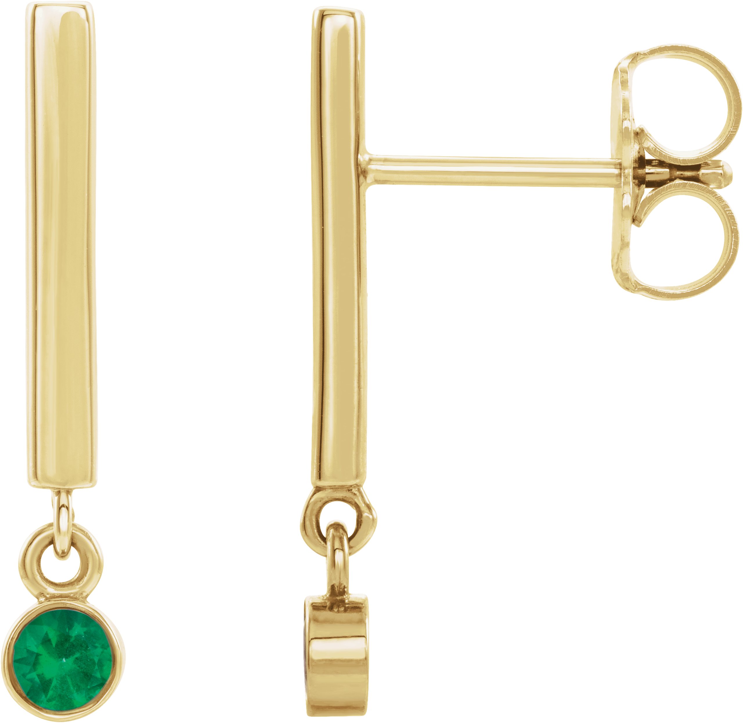 14K Yellow Chatham® Lab-Created Emerald Bar Earrings