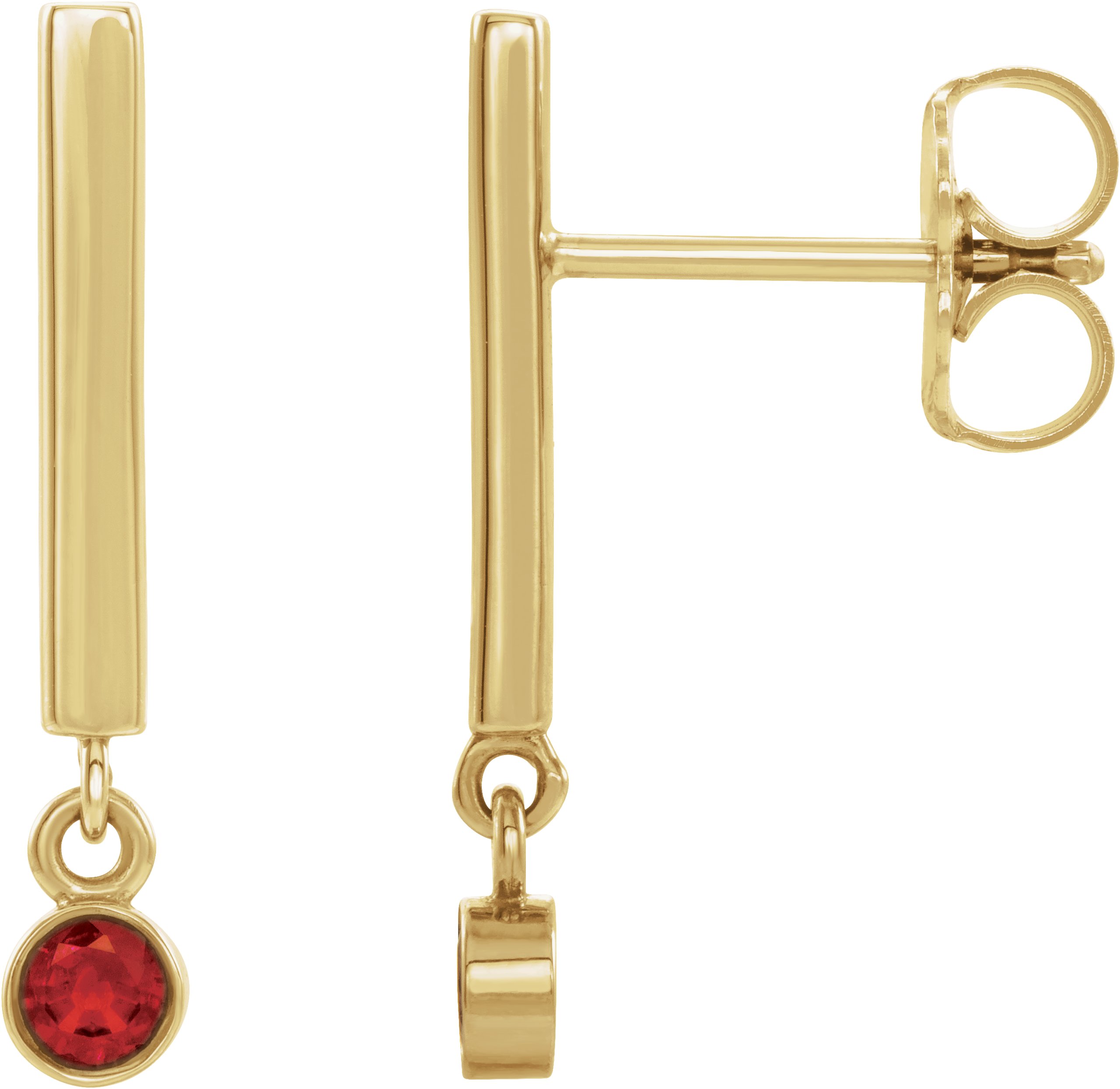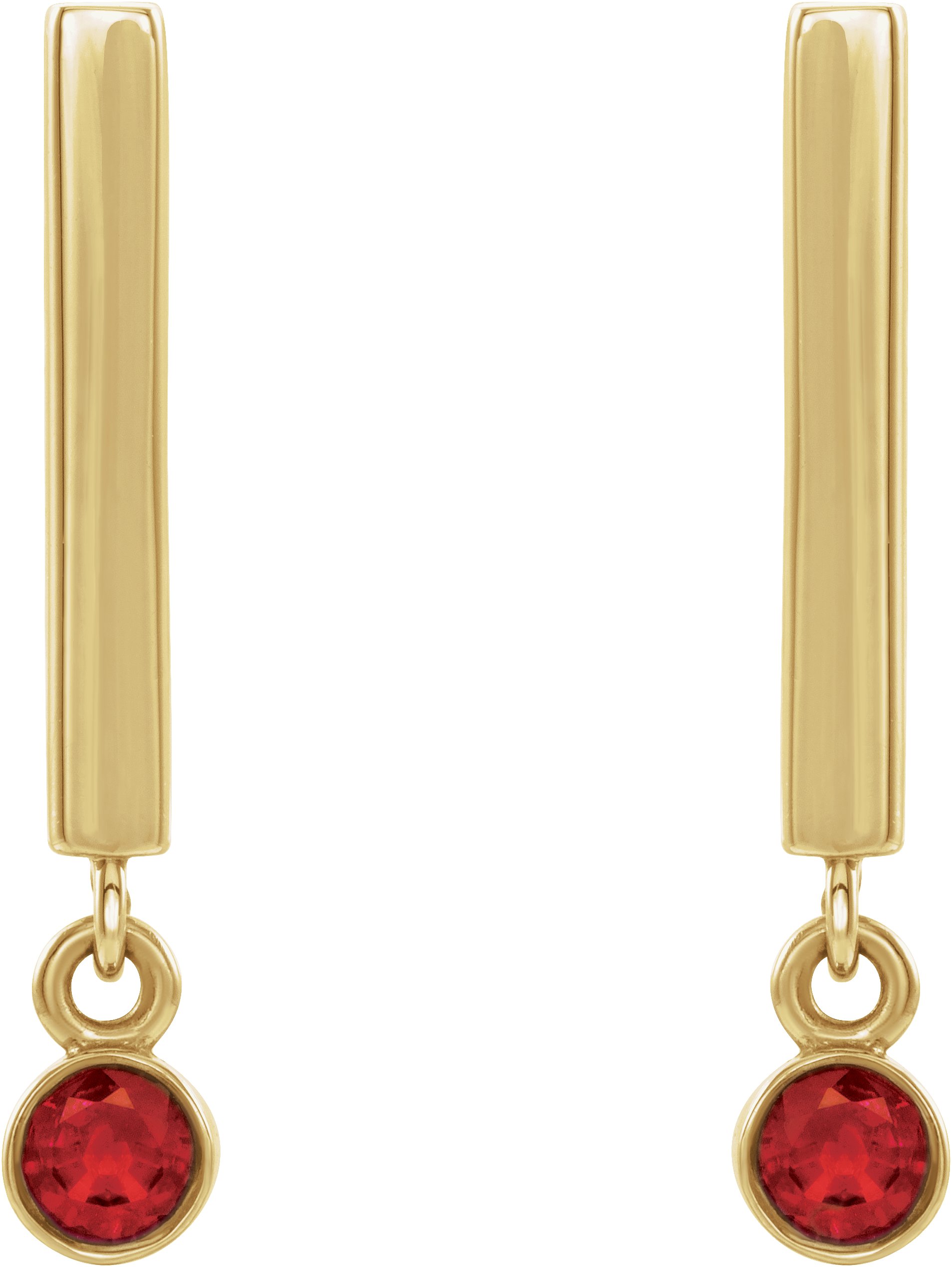 14K Yellow Chatham® Lab-Created Ruby Bar Earrings