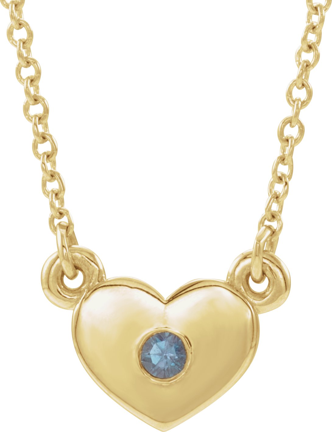 14K Yellow Chatham Created Alexandrite Heart 16 inch Necklace