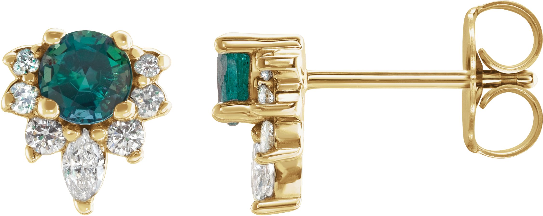 14K Yellow Chatham Created Alexandrite & 1/6 CTW Diamond Earrings