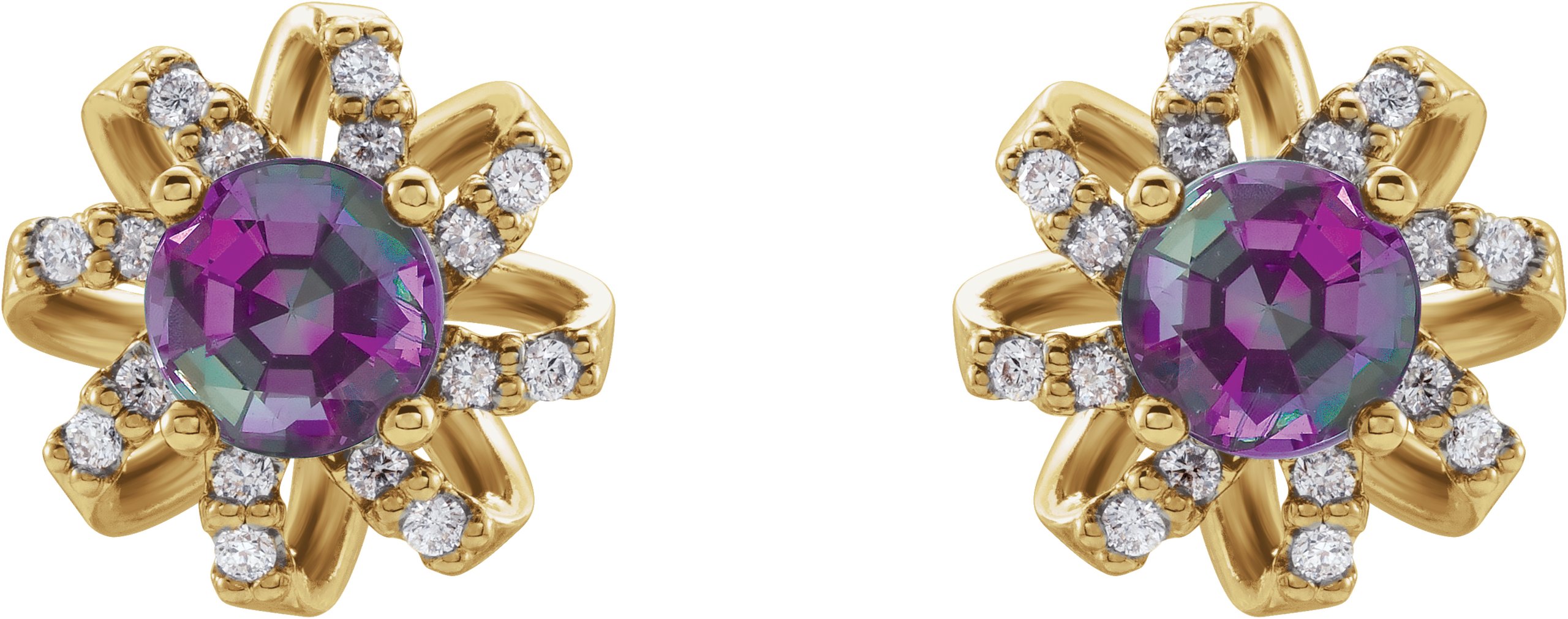 14K Yellow Chatham Created Alexandrite and .17 CTW Diamond Halo Style Earrings