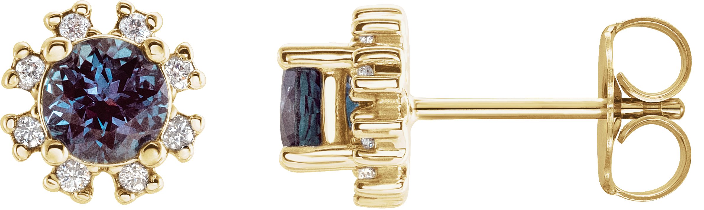 14K Yellow Chatham Created Alexandrite and .20 CTW Diamond Earrings