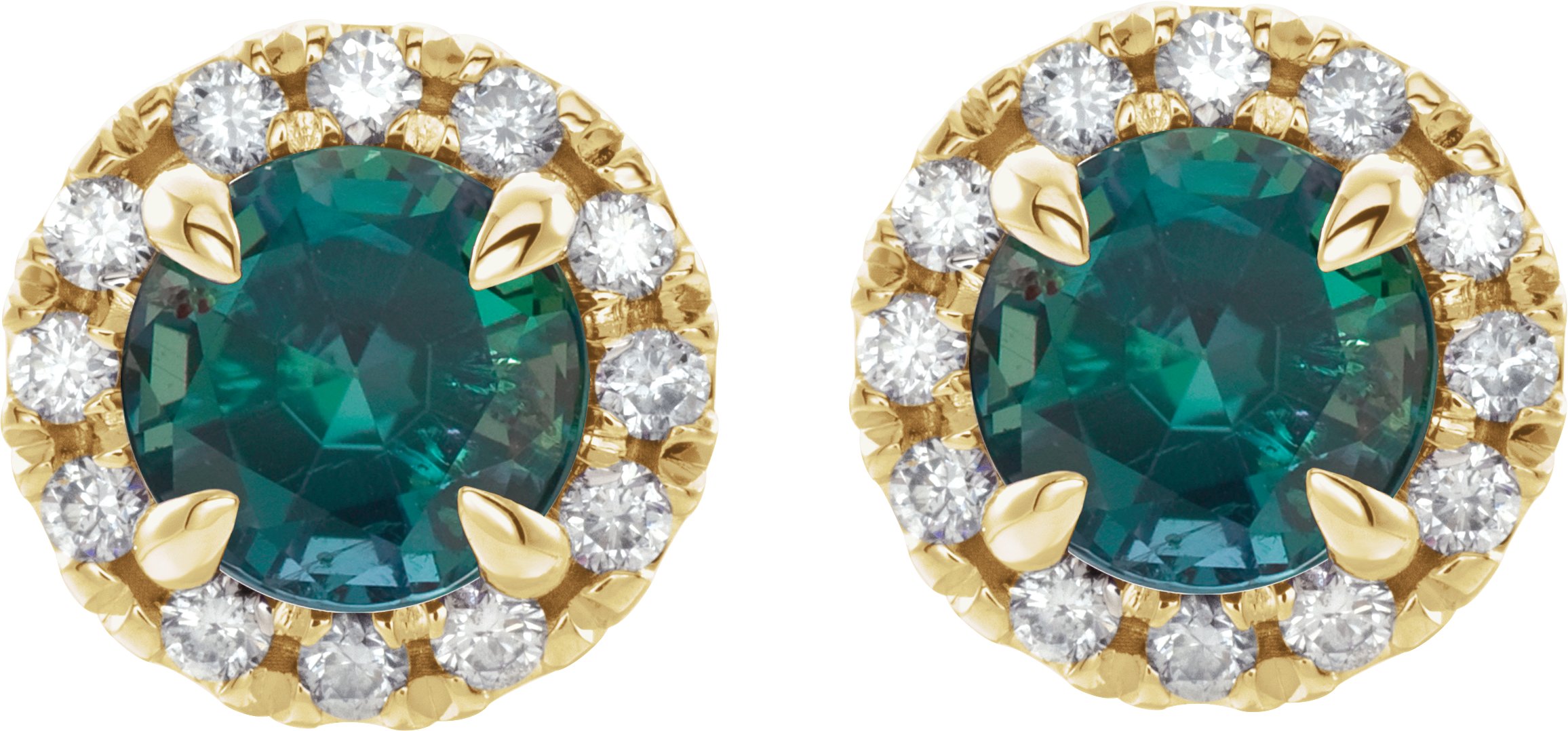 14K Yellow Chatham Created Alexandrite and .20 CTW Diamond Earrings