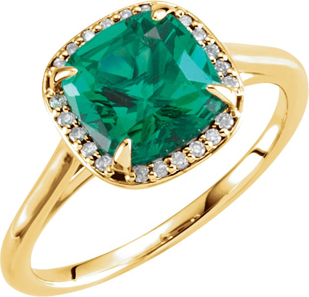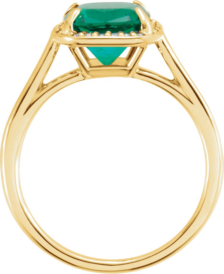 14K Yellow Chatham Created Emerald & .055 CTW Diamond Ring