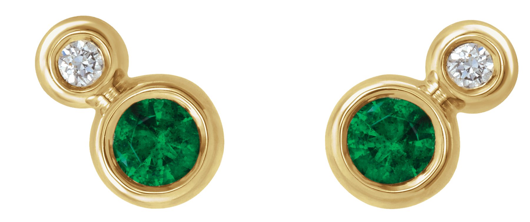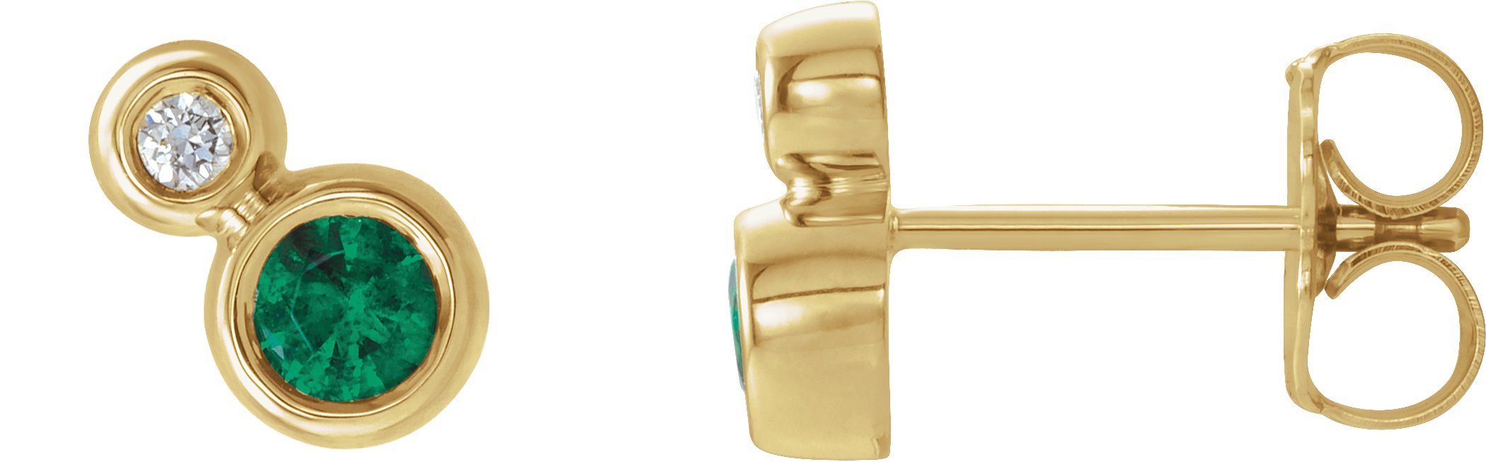14K Yellow Chatham Created Emerald & 1/8 CTW Diamond Earrings