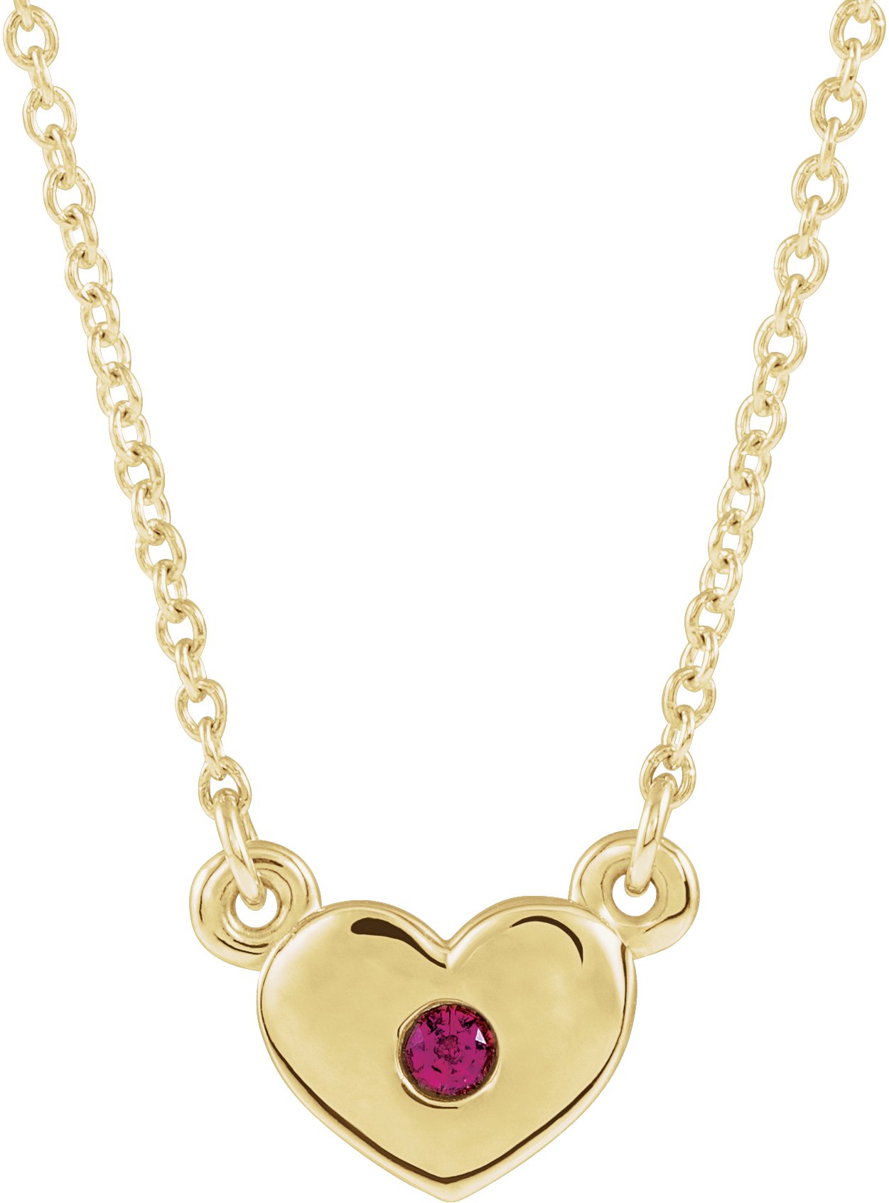 14K Yellow Chatham Created Ruby Heart 16 inch Necklace
