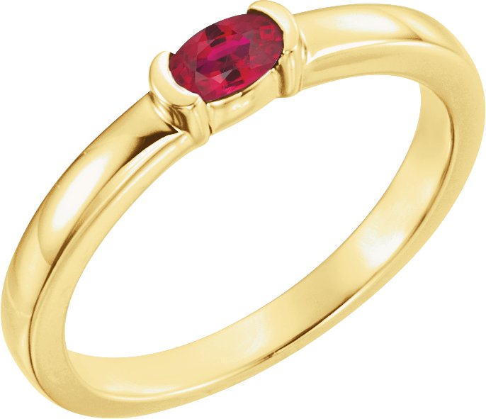 14K Yellow Chatham Created Ruby Oval Stackable Family Ring