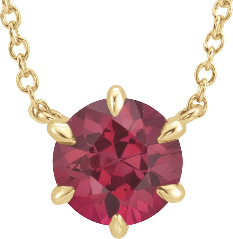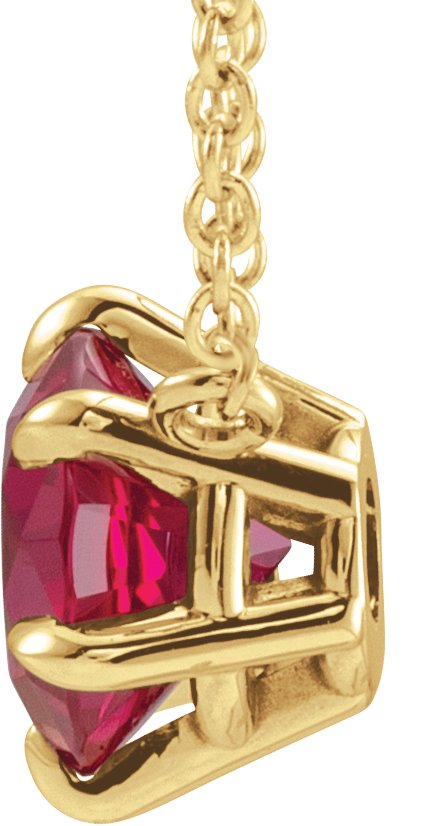 14K Yellow Chatham Created Ruby Solitaire 16 inch Necklace