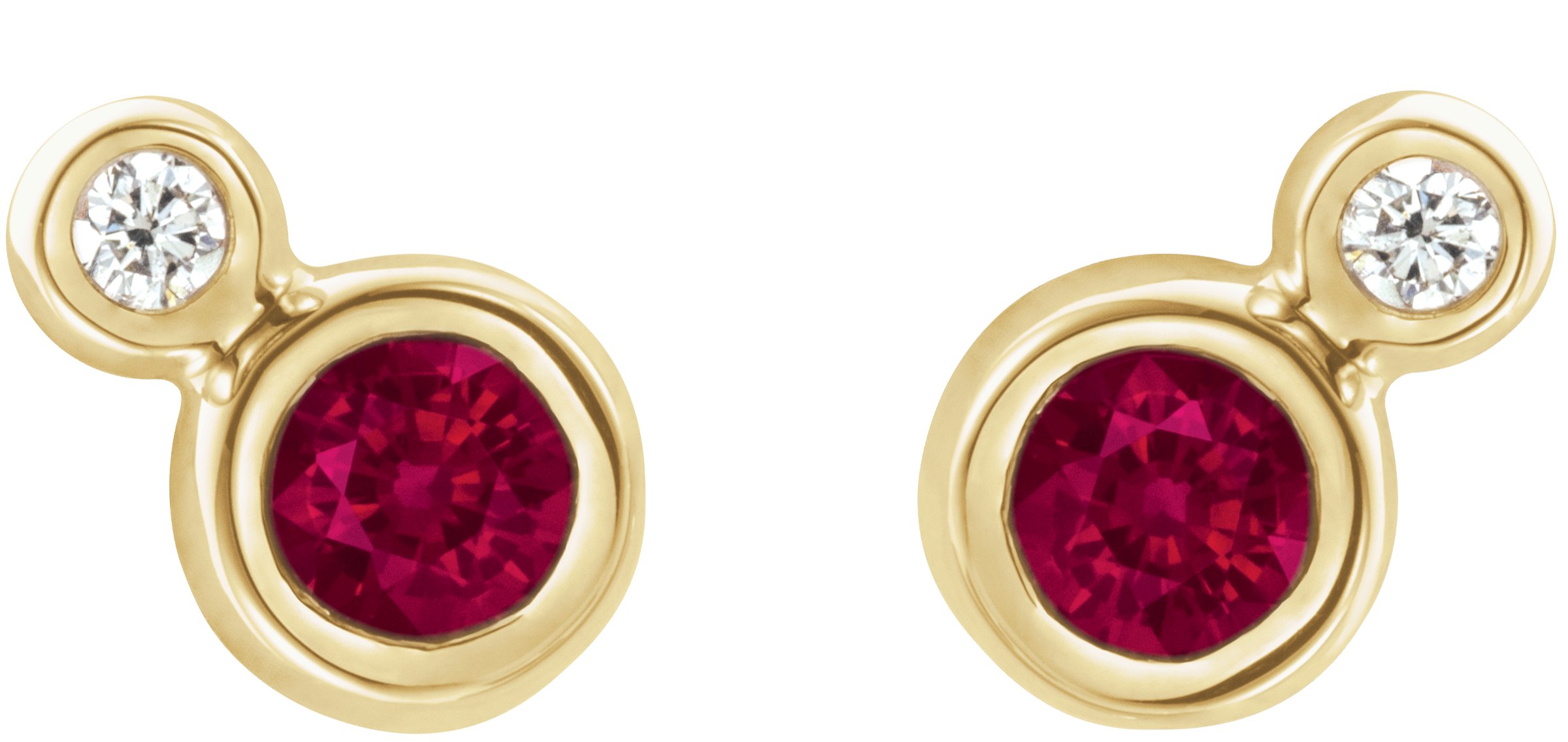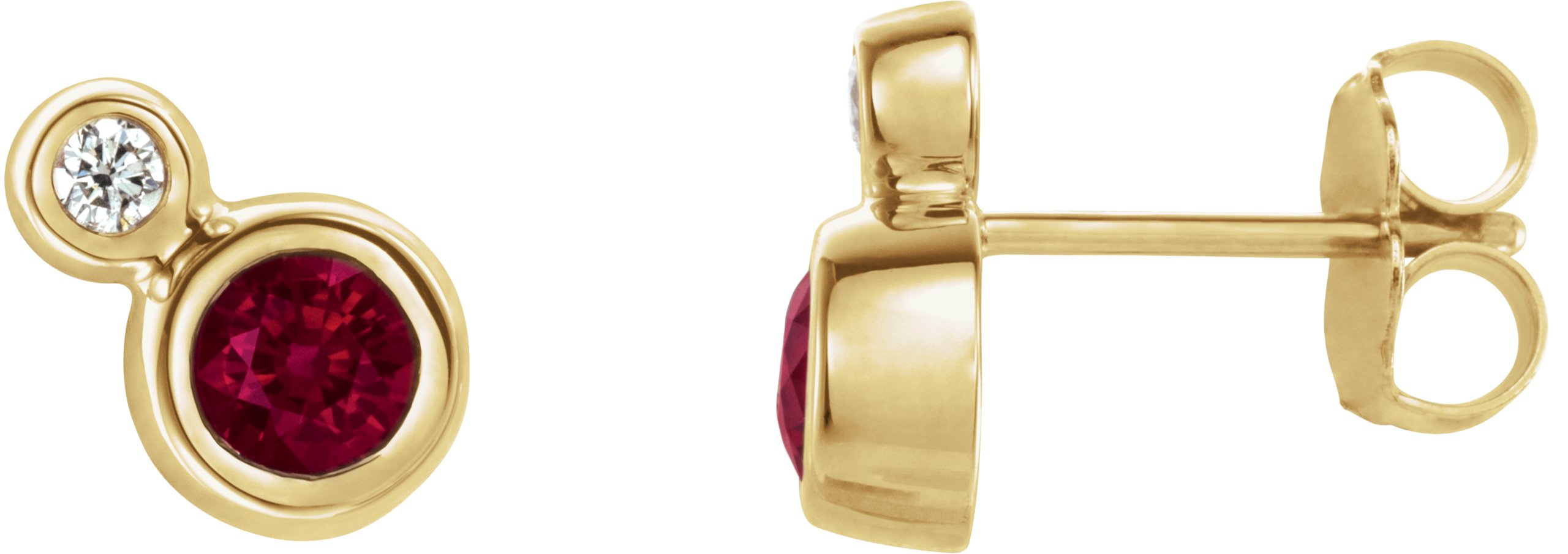 14K Yellow Chatham Created Ruby & .03 CTW Diamond Earrings
