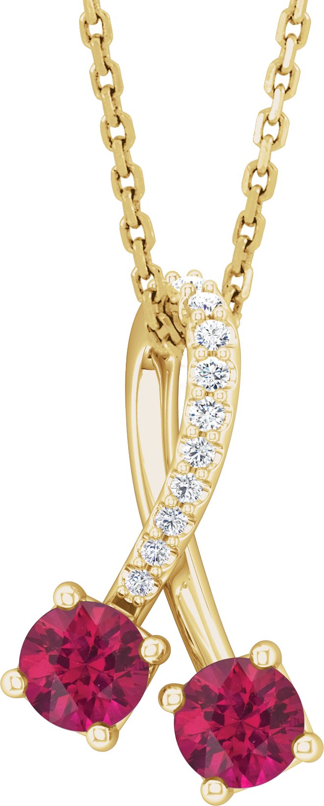 14K Yellow Chatham Created Ruby & .05 CTW Diamond 16 18" Necklace Ref. 16760866
