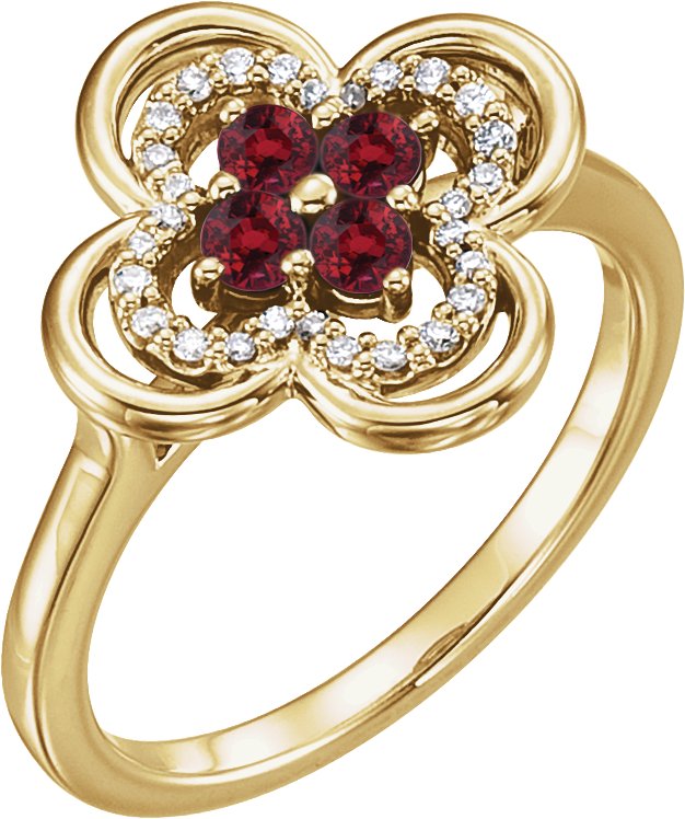 14K Yellow Chatham Created Ruby and .10 CTW Diamond Ring
