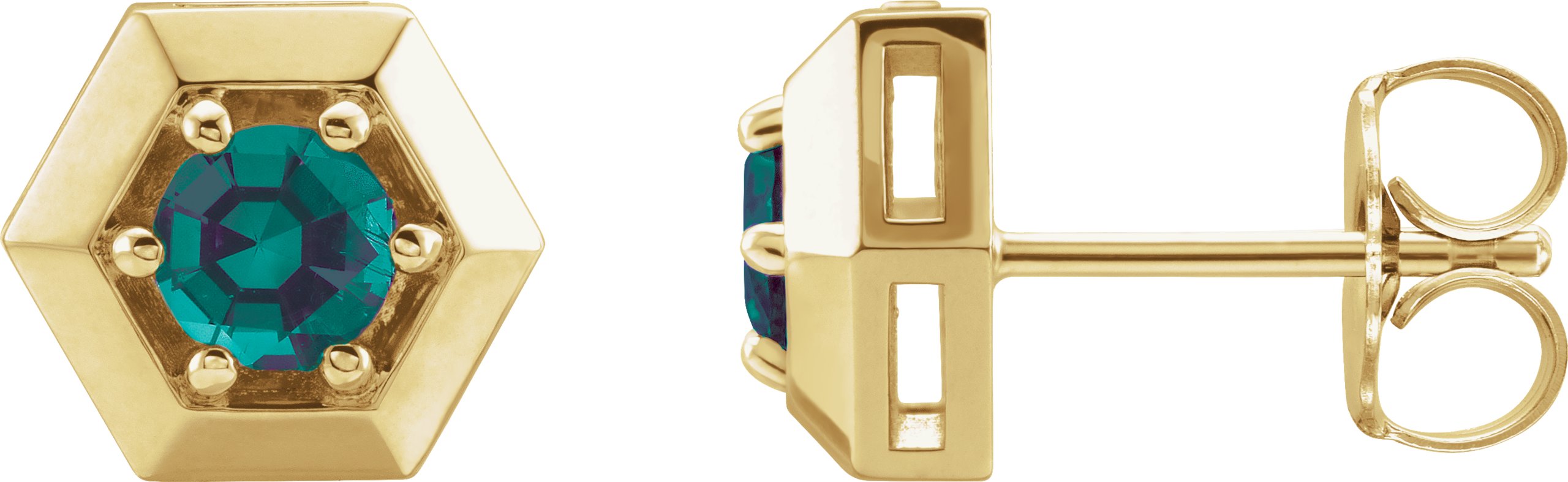 14K Yellow Chatham Lab Created Alexandrite Geometric Earrings