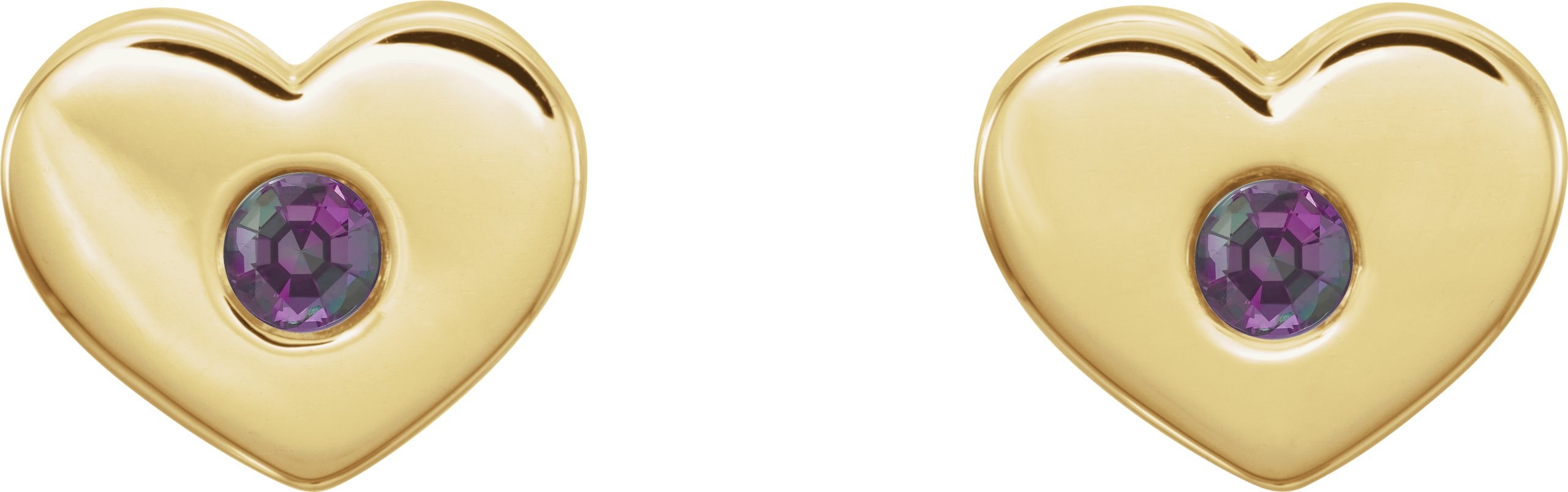 14K Yellow Chatham Lab Created Alexandrite Heart Earrings