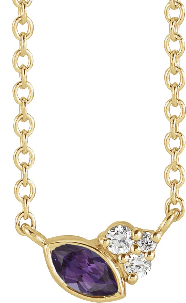 14K Yellow Chatham Lab Created Alexandrite & .03 CTW Diamond 18 inch Necklace