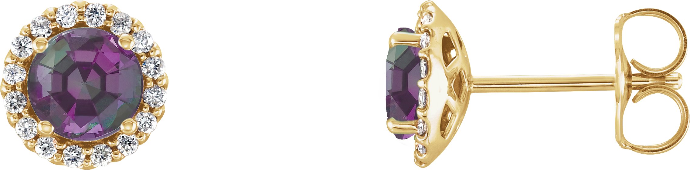 14K Yellow Chatham Lab Created Alexandrite and .17 CTW Diamond Earrings