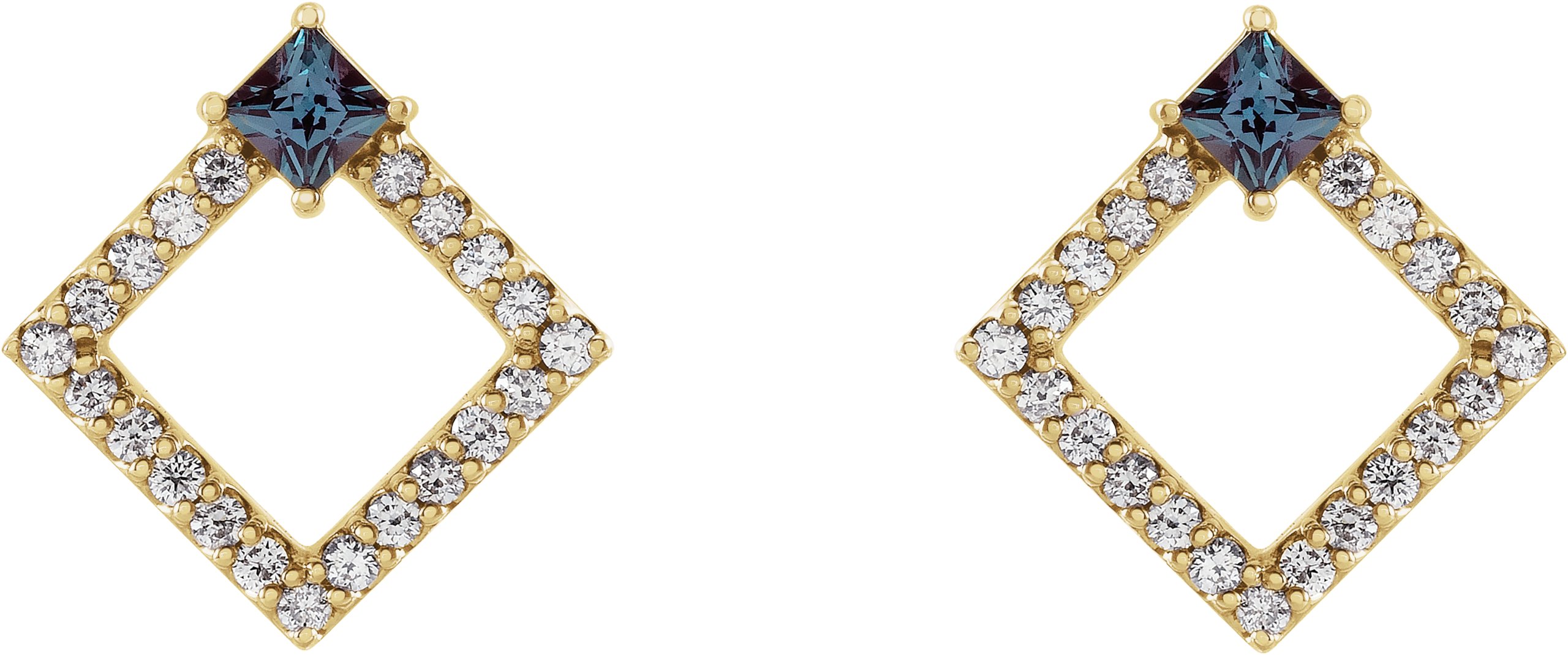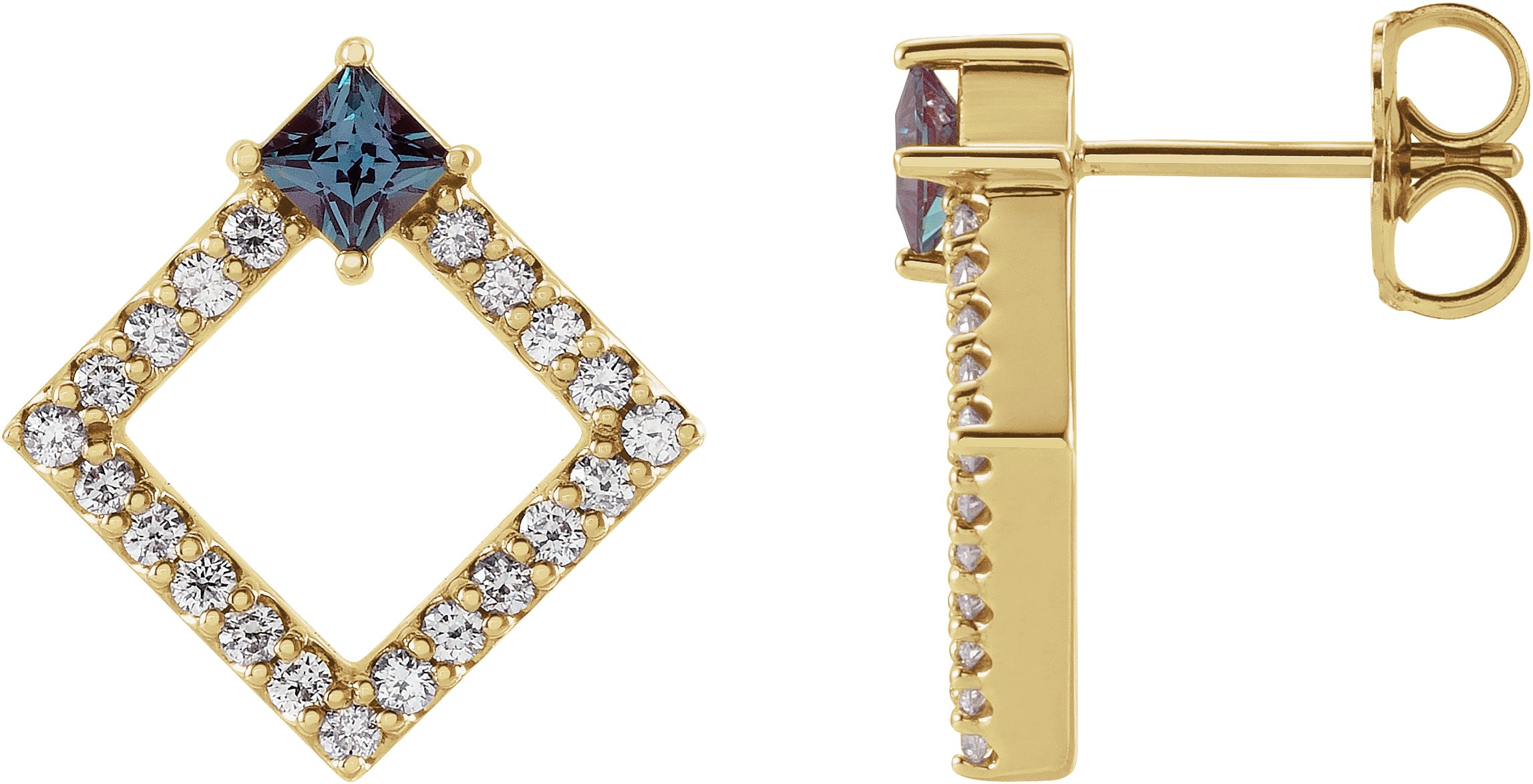 14K Yellow Chatham Lab Created Alexandrite & 1/3 CTW Diamond Earrings