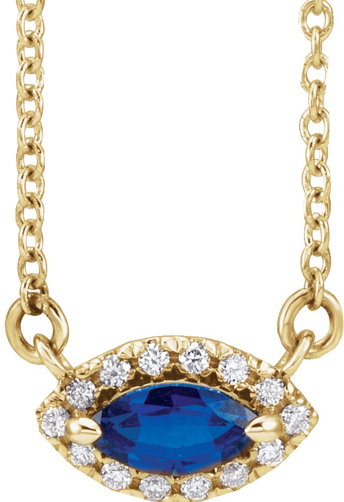 14K Yellow Chatham Lab Created Blue Sapphire & .06 CTW Diamond 16 inch Necklace