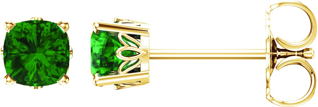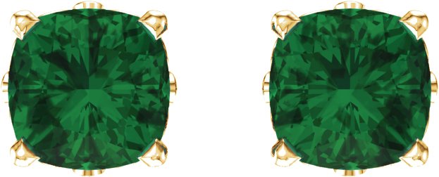 14K Yellow Chatham Lab Created Emerald Earrings
