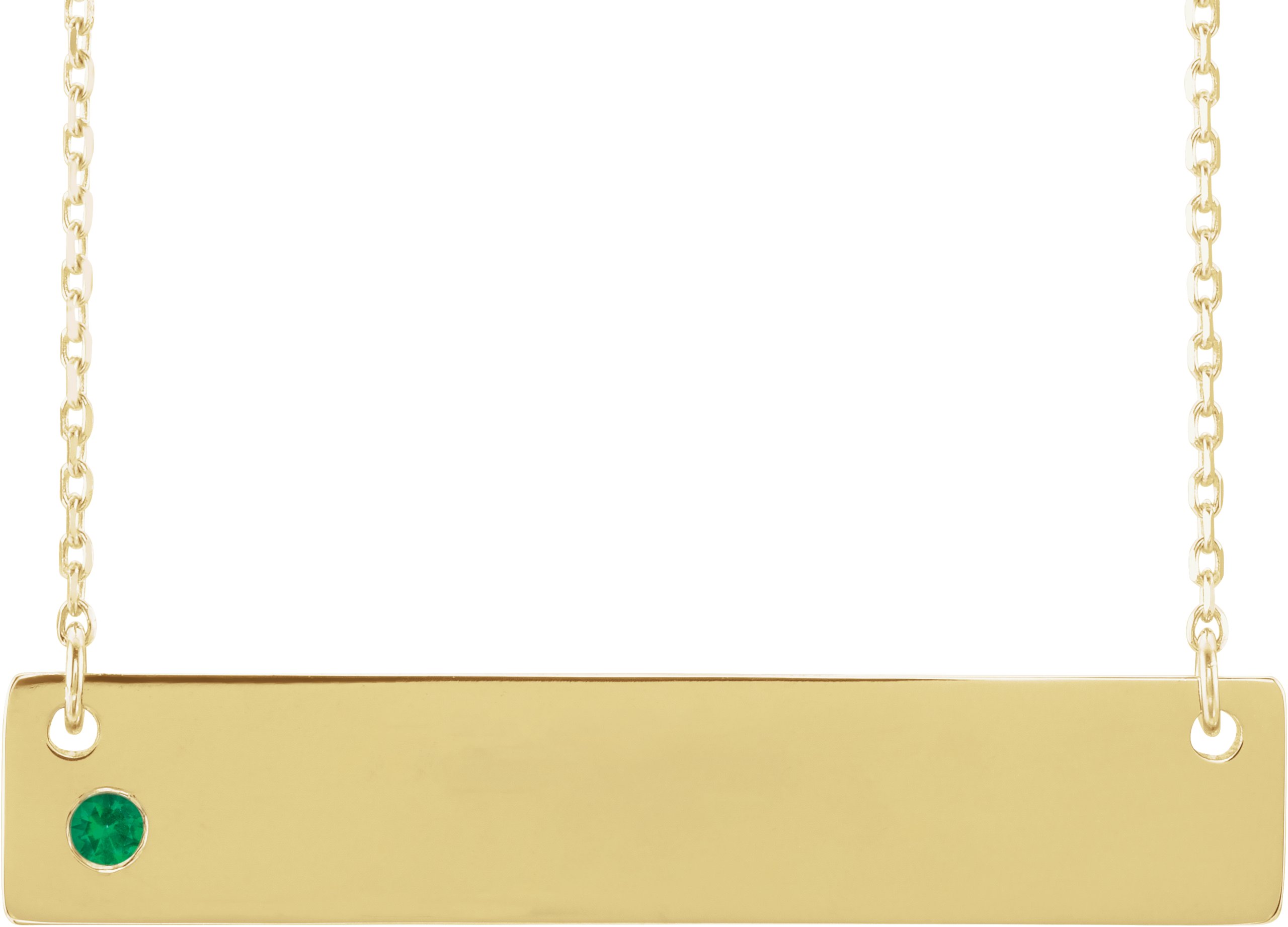 14K Yellow Chatham Lab Created Emerald Family Bar 16 18 inch Necklace