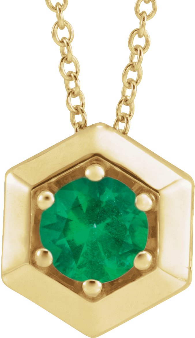 14K Yellow Chatham Lab Created Emerald Geometric 16 18" Necklace Ref. 16628911