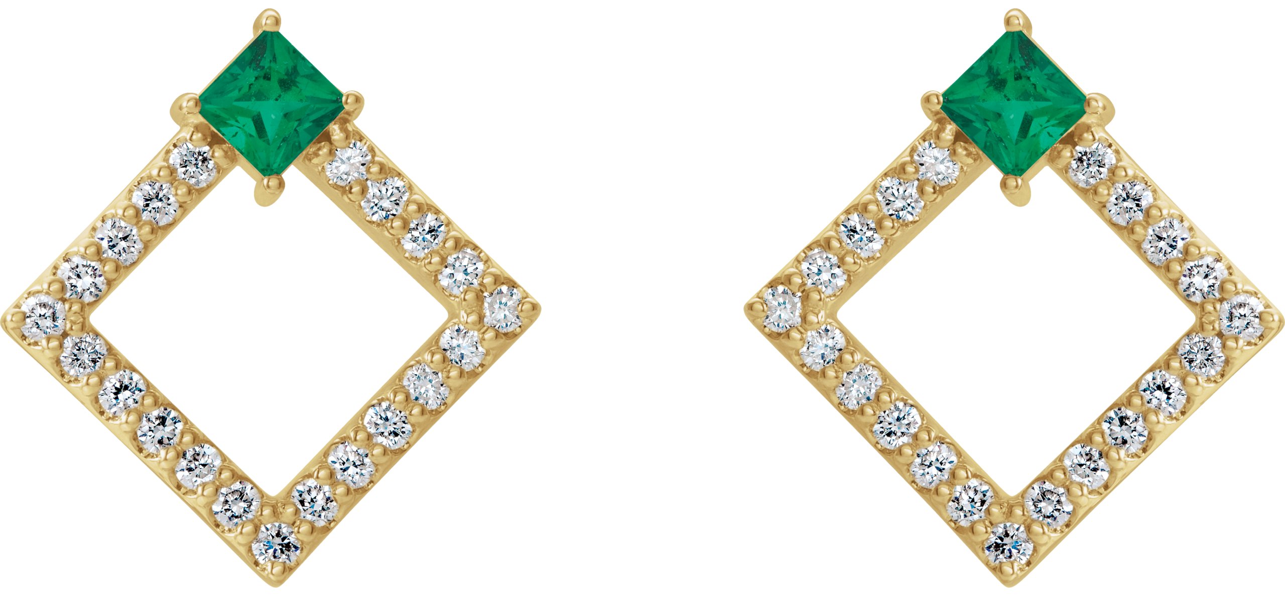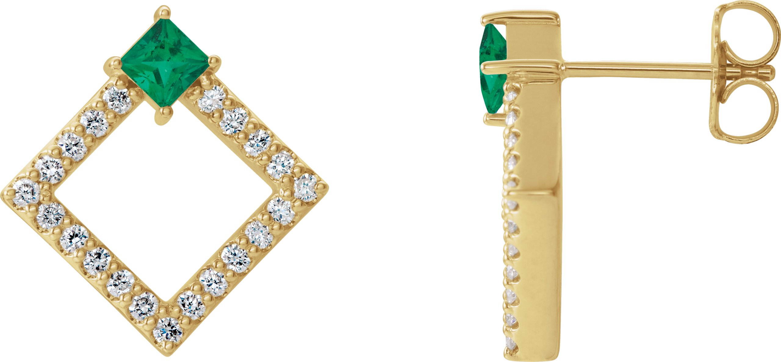 Description: Chatham Lab Created Emerald And 1/3 Ctw Diamond Earrings