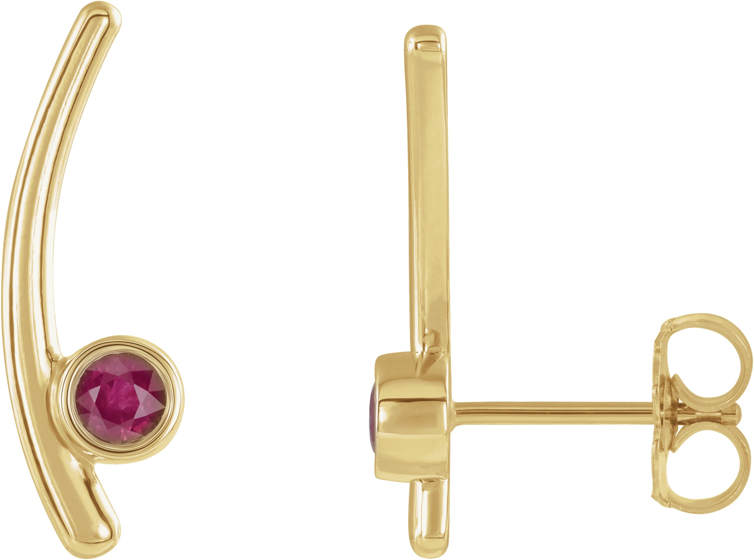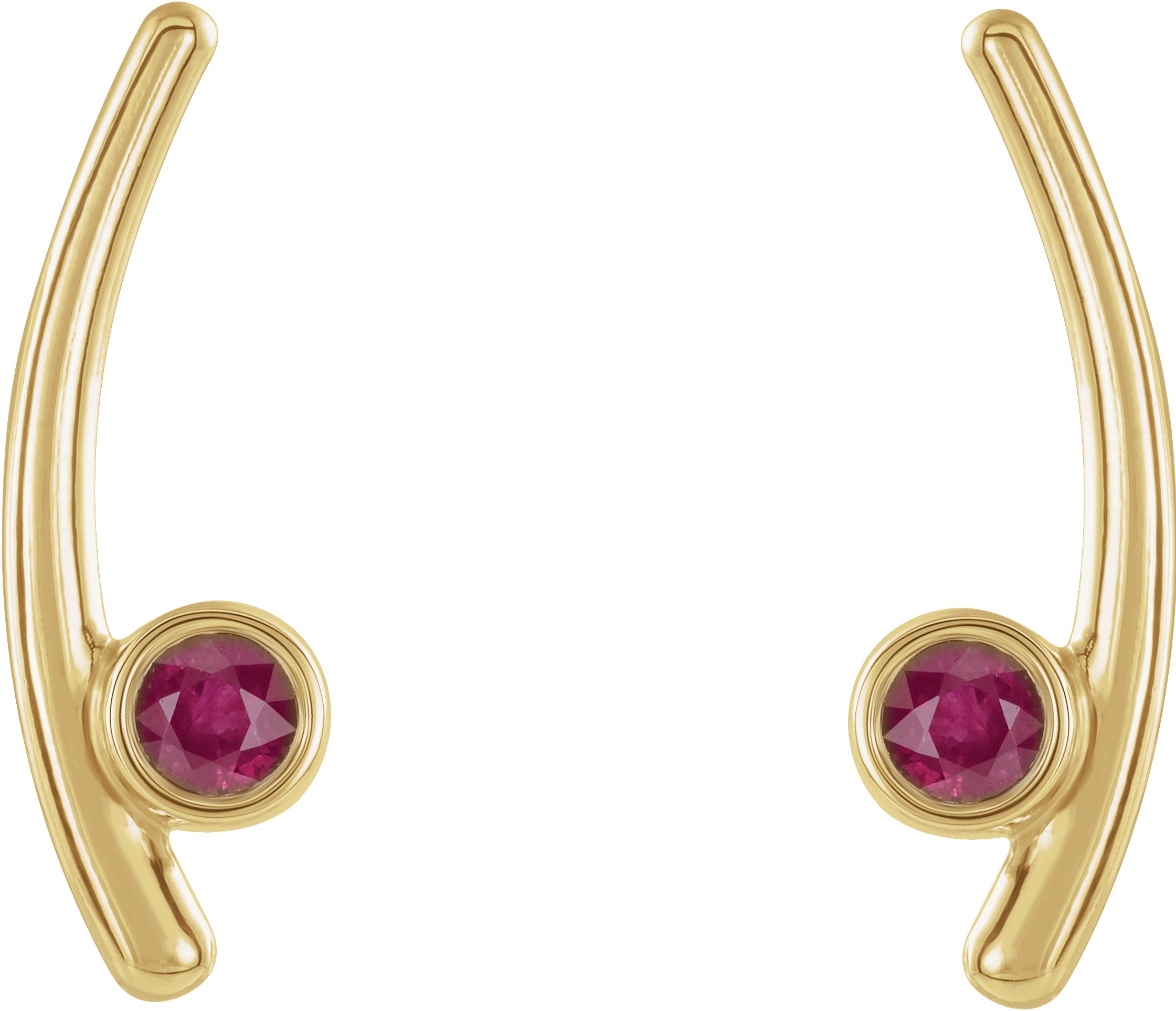 14K Yellow Chatham Lab Created Ruby Ear Climbers