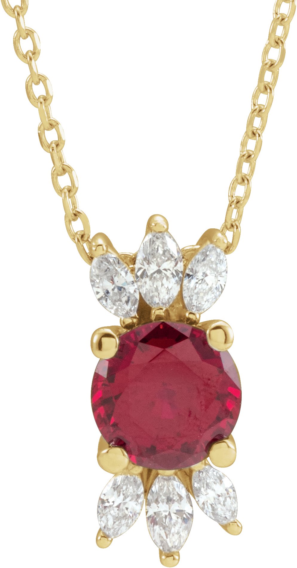 14K Yellow Chatham Lab Created Ruby & 1/4 CTW Diamond 16 18 inch Necklace
