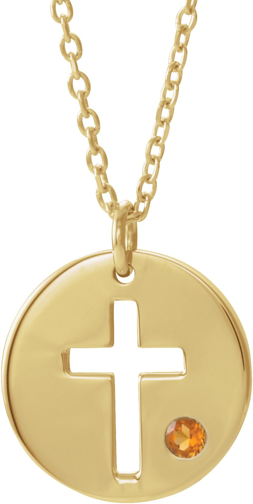 14K Yellow Citrine Pierced Cross Disc 16 18" Necklace Ref. 13377655