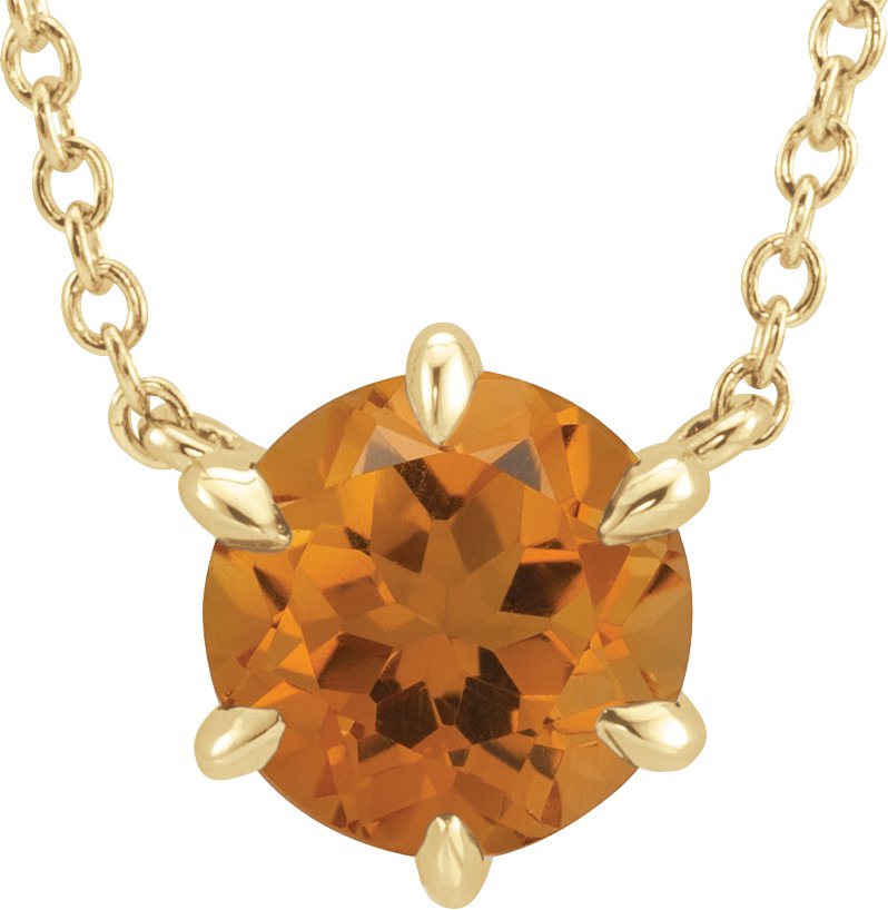 14K Yellow Citrine Solitaire 18 inch Necklace