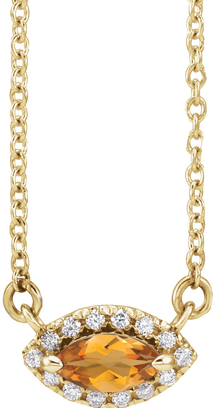14K Yellow Citrine & .06 CTW Diamond 18 inch Necklace
