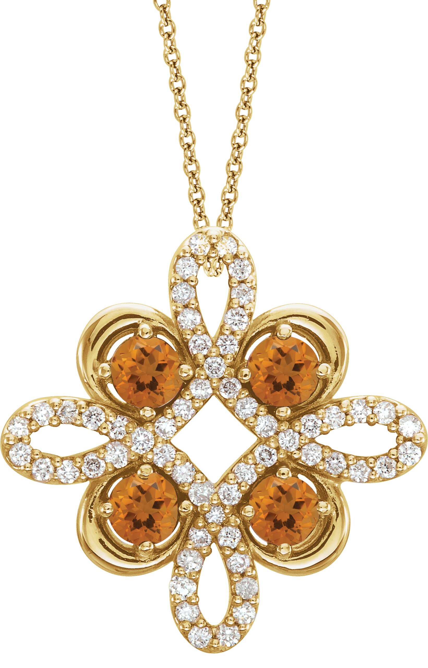 14K Yellow Citrine and .17 CTW Diamond Clover 18 inch Necklace
