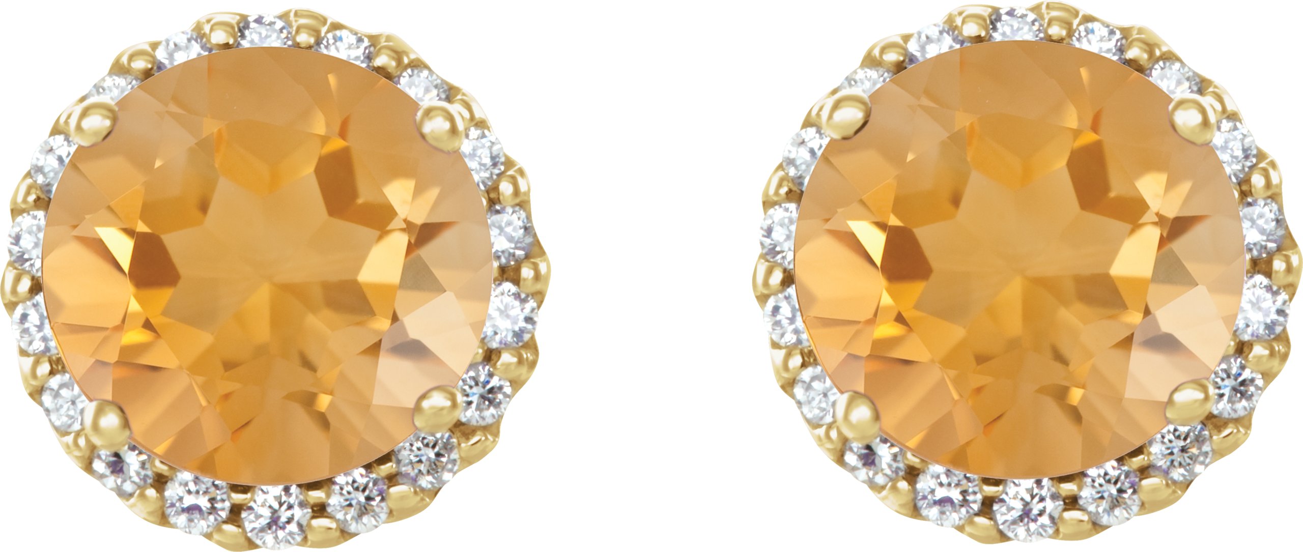 14K Yellow Citrine and .17 CTW Diamond Earrings