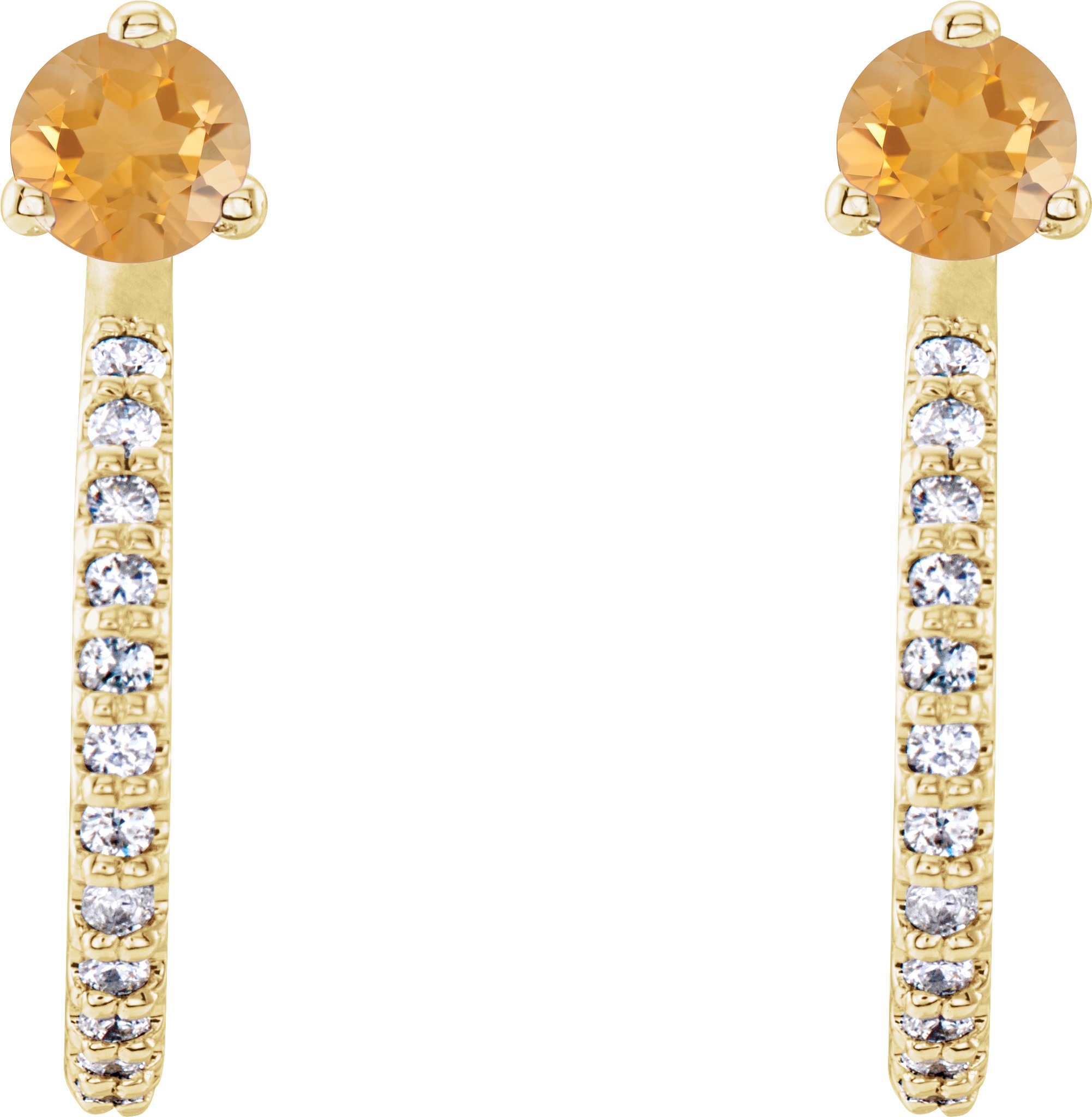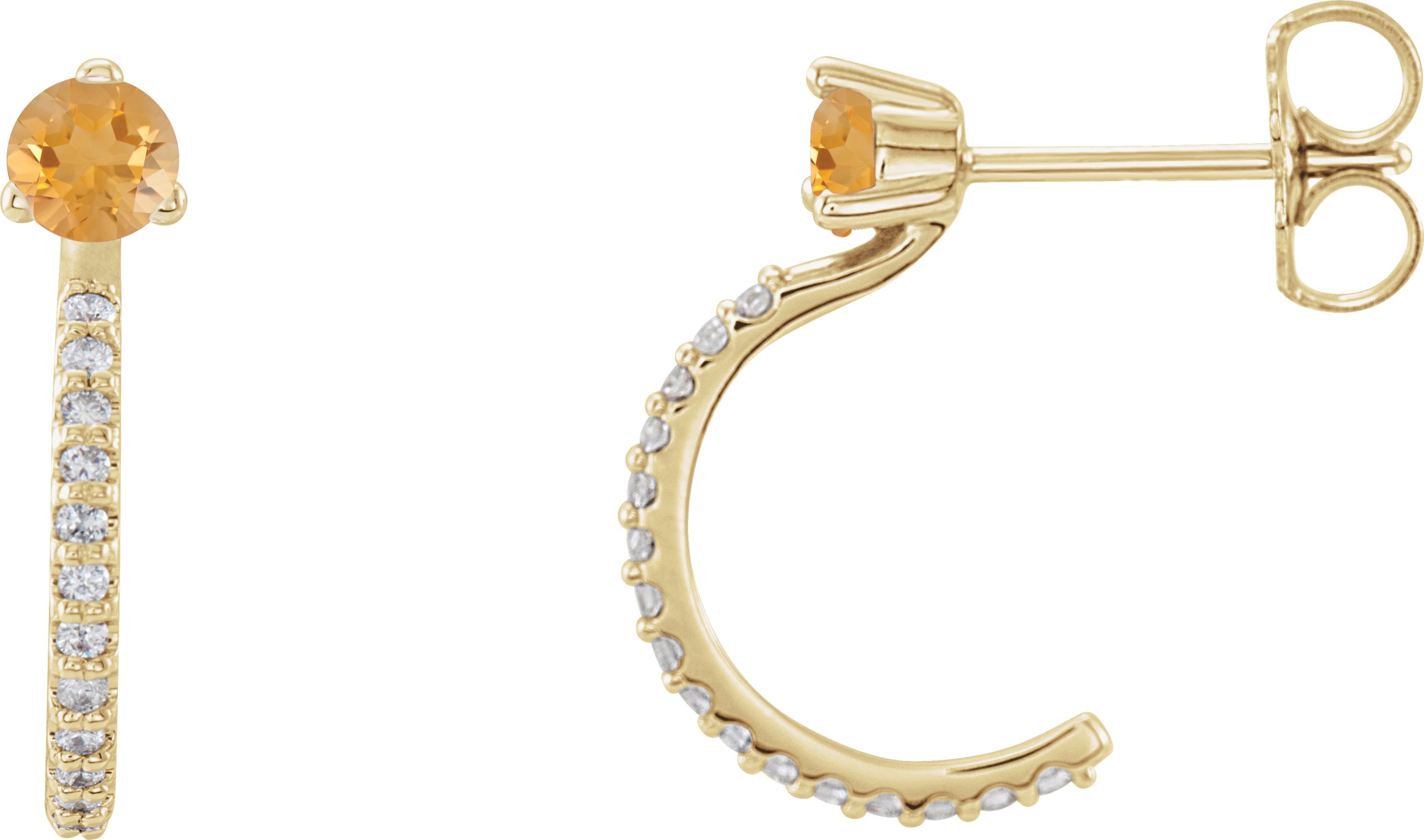 14K Yellow Citrine and .17 CTW Diamond Hoop Earrings