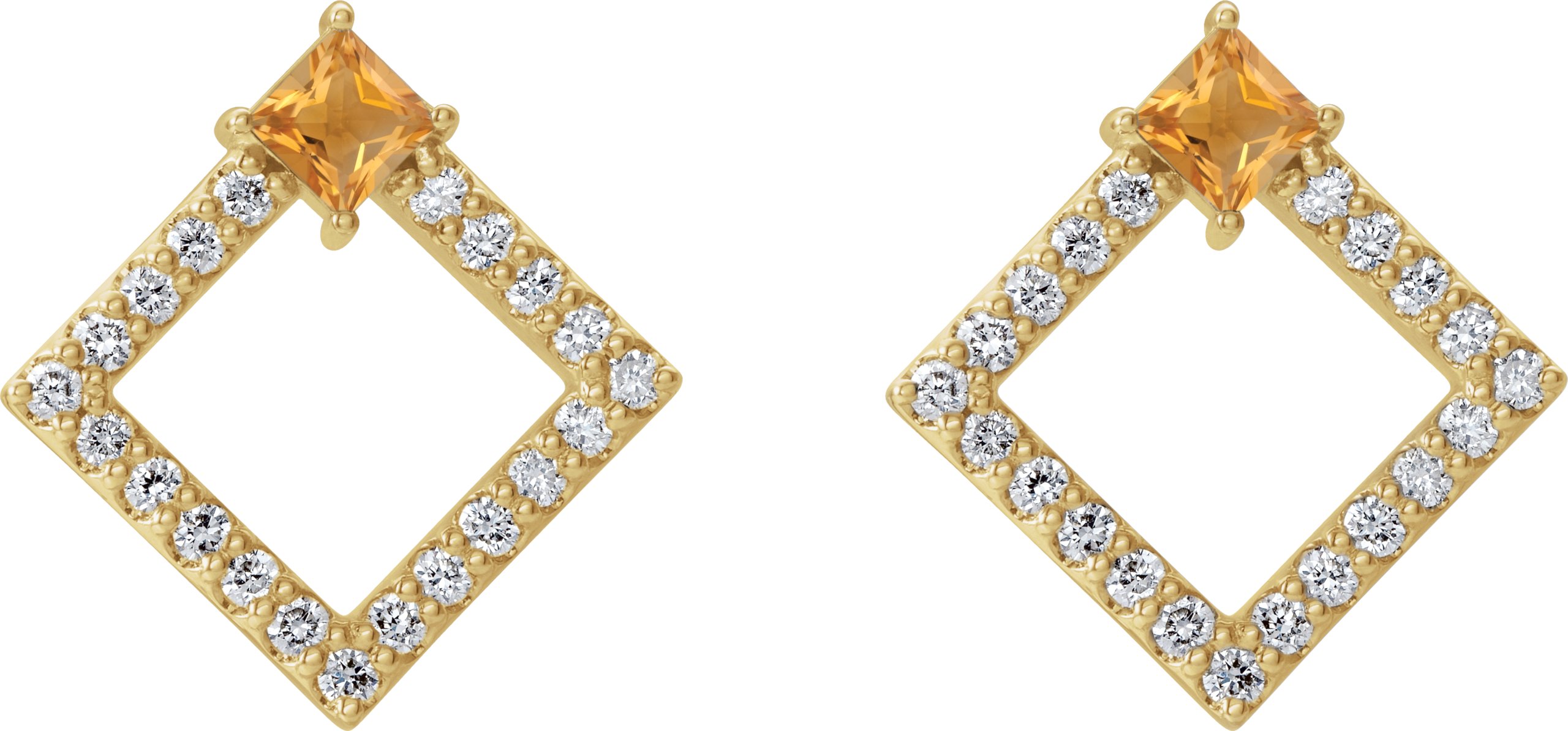 14K Yellow Citrine & 1/3 CTW Diamond Earrings