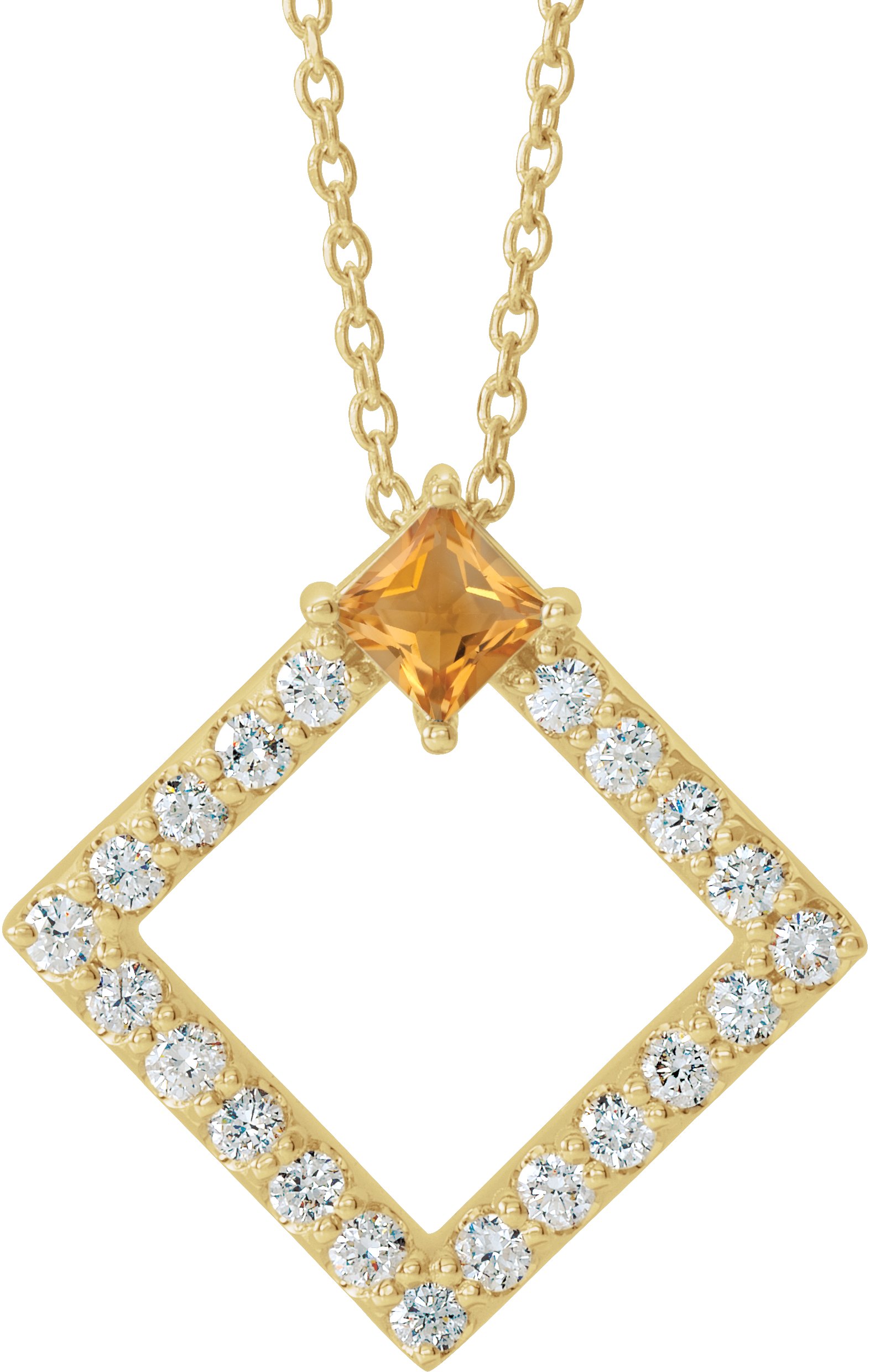 14K Yellow Citrine and .375 CTW Diamond 16 18 inch Necklace