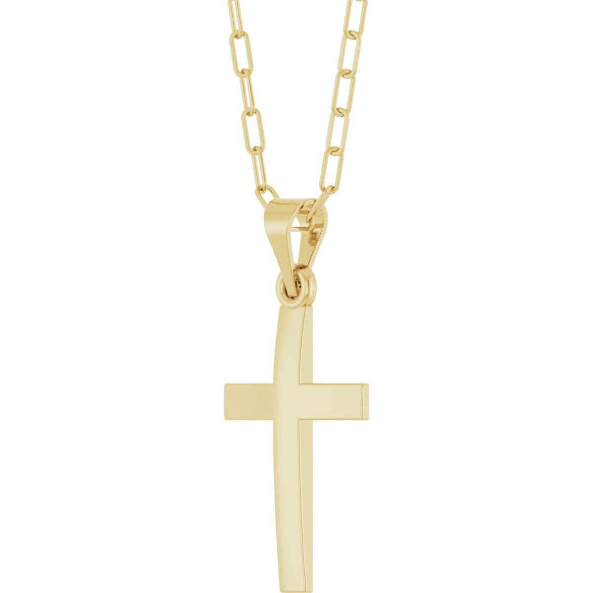 14K Yellow Cross & Paperclip-Style Chain 18" Necklace