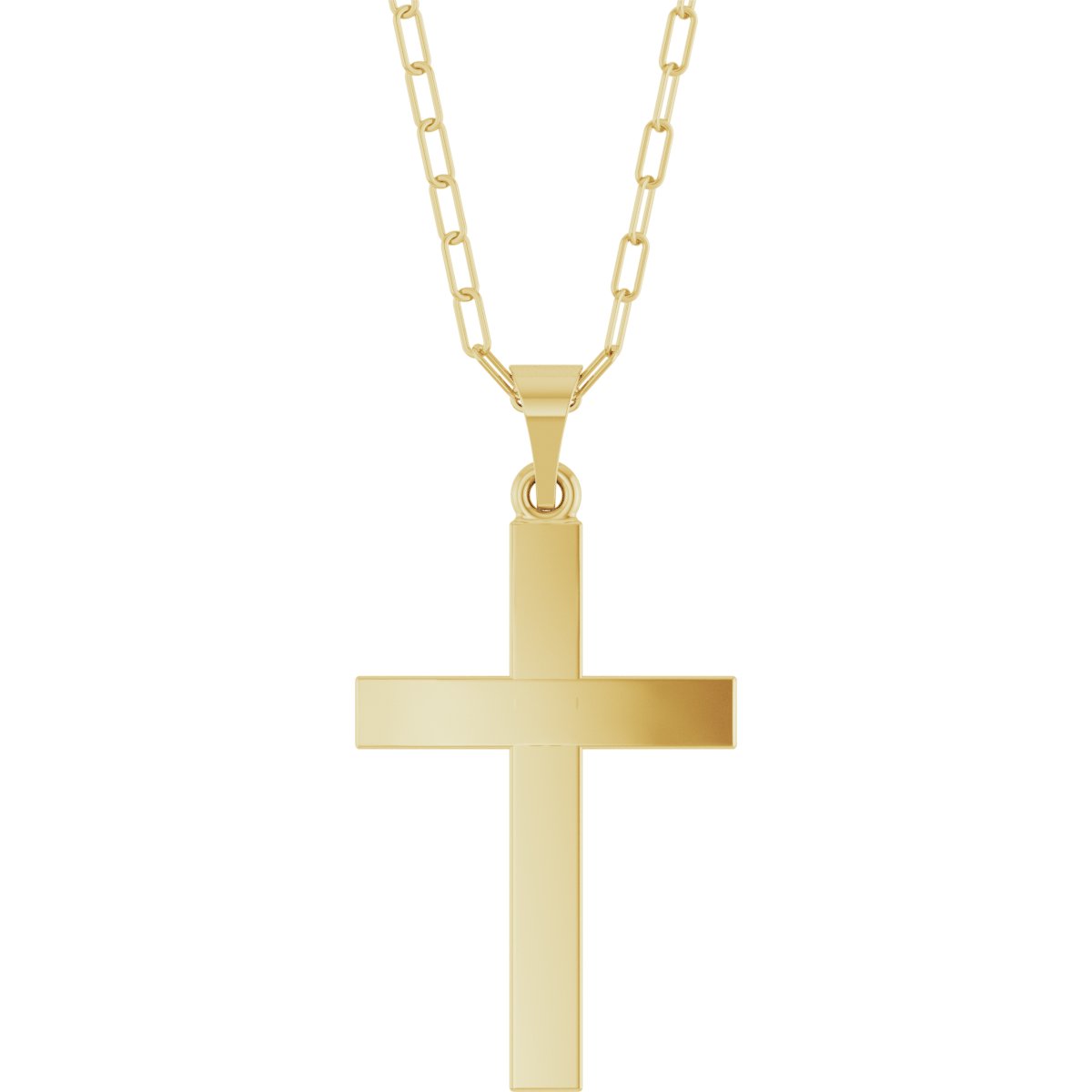 14K Yellow Cross & Paperclip-Style Chain 18" Necklace