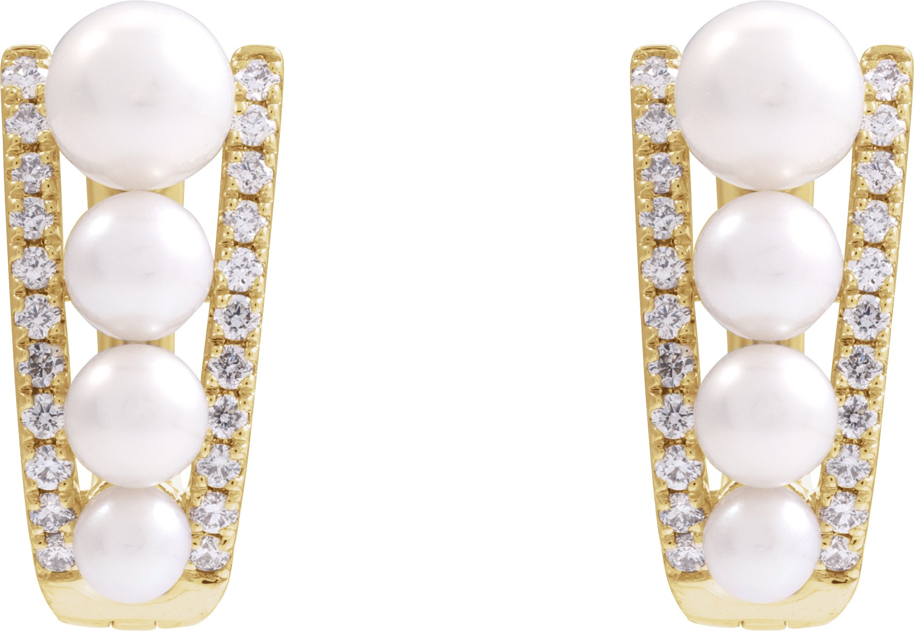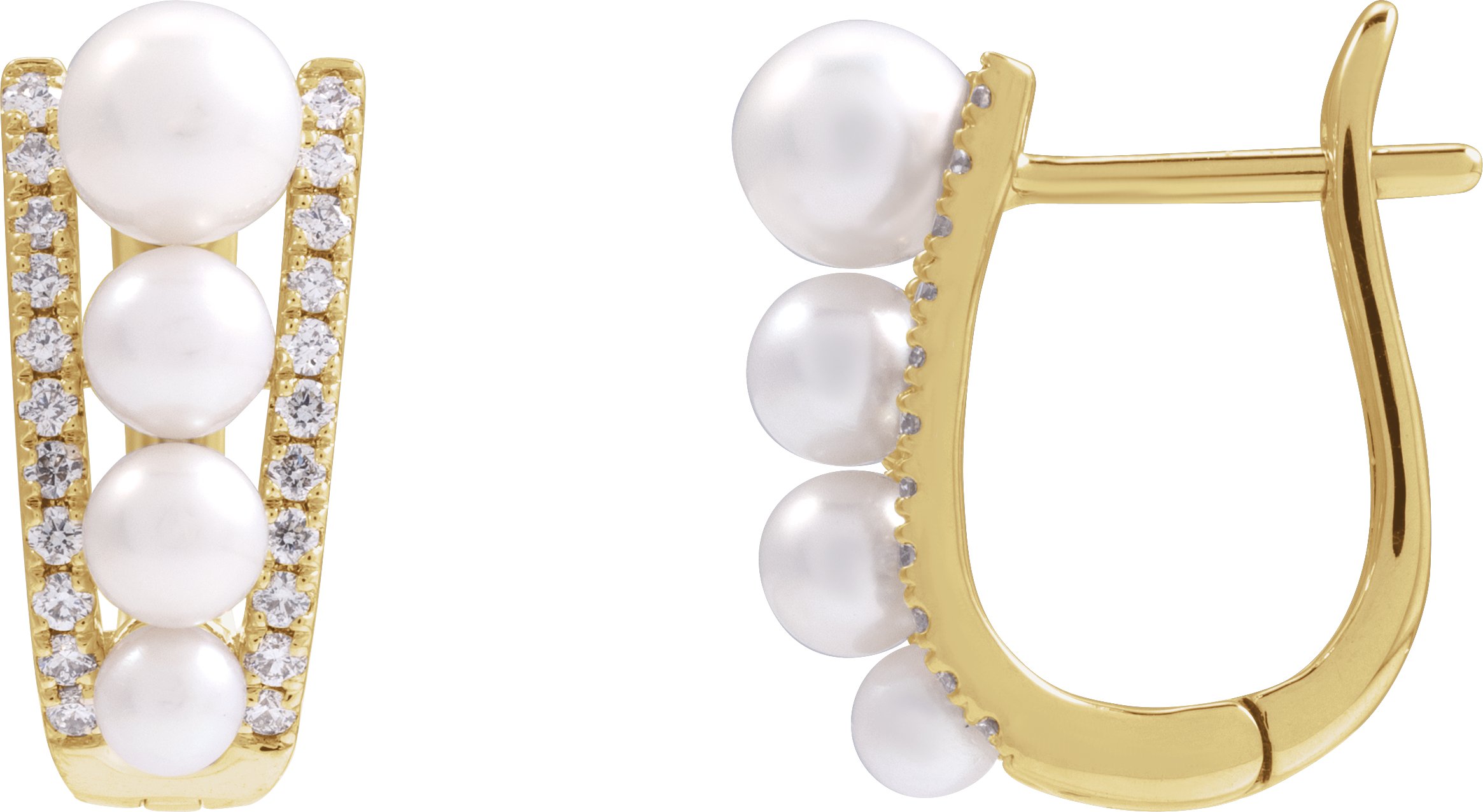 14K Yellow Cultured White Freshwater Pearl & 1/4 CTW Natural Diamond Hoop Earrings