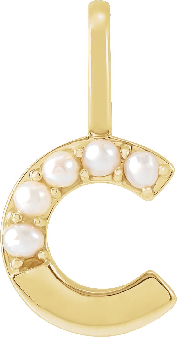 14K Yellow Cultured White Pearl Initial C Charm or Pendant Ref 18479248