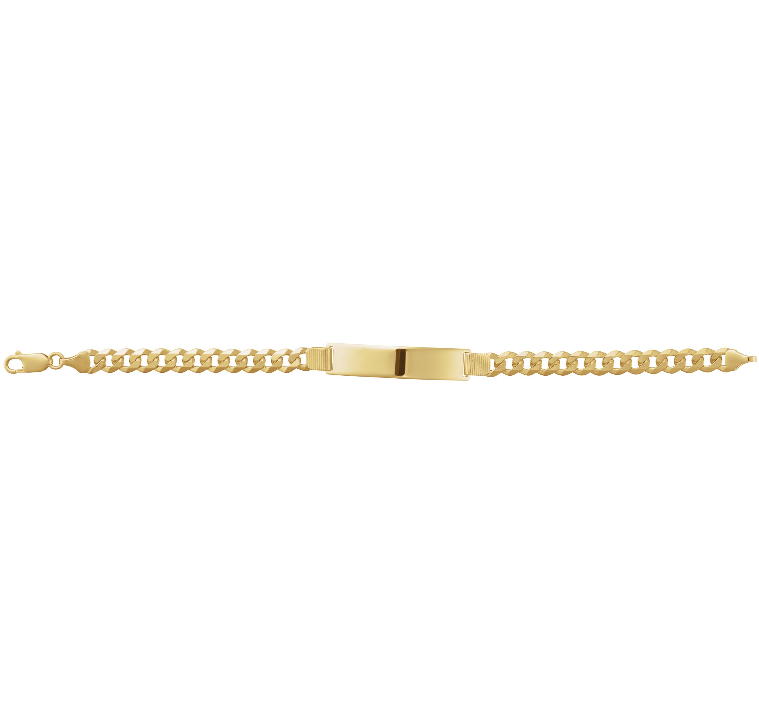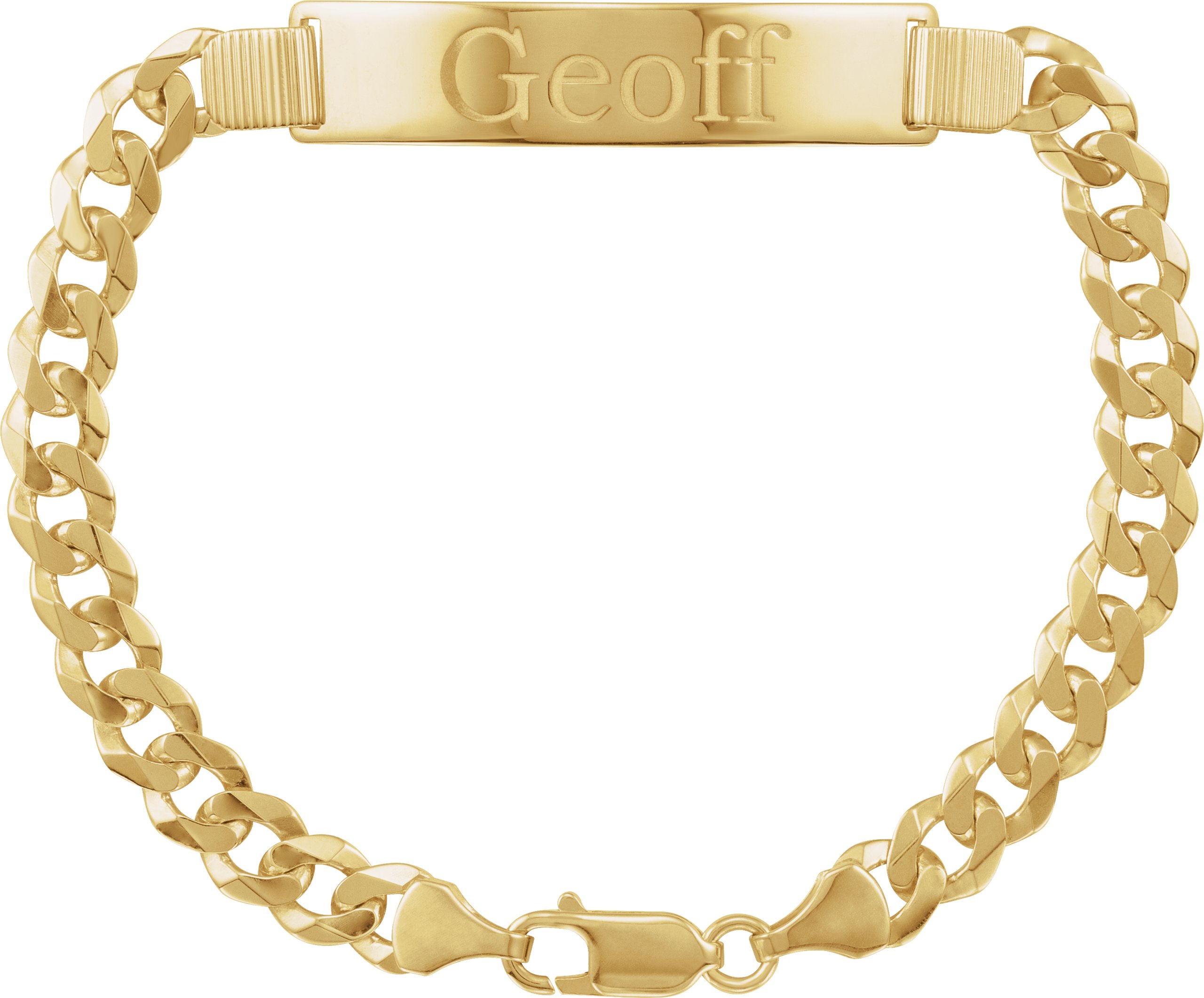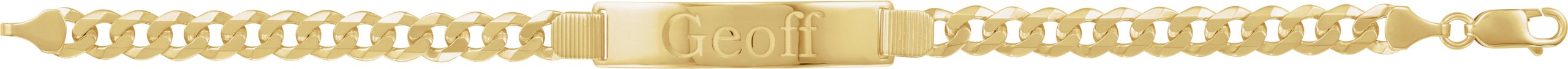 14K Yellow Curb Identification 9 Inch Bracelet. Engraving available as an option with a maximum of 9 characters.