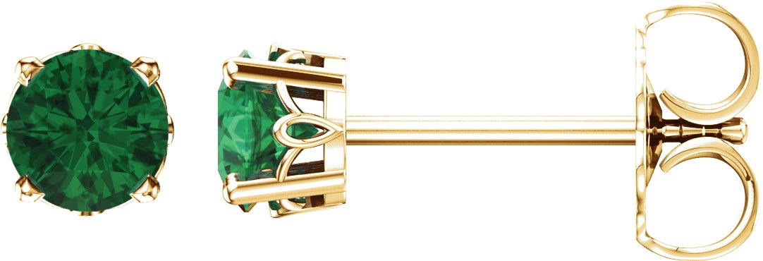14K Yellow Emerald 4 Prong Scroll Setting Stud Earrings