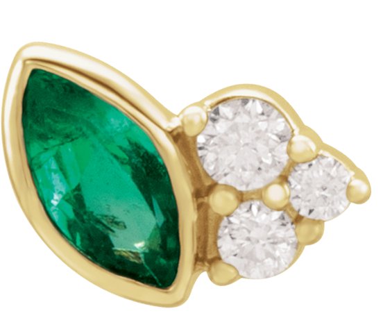 14K Yellow Emerald and .03 CTW Diamond Left Earring