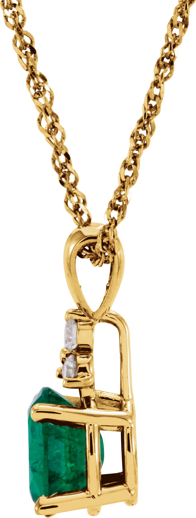 14K Yellow Emerald and .10 CTW Diamond 18 inch Necklace