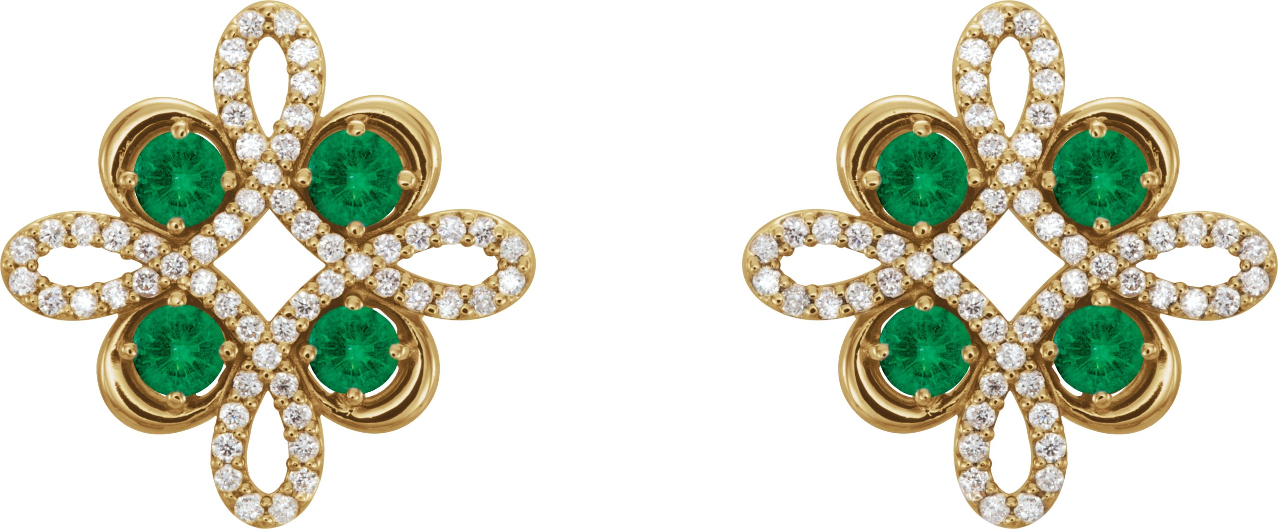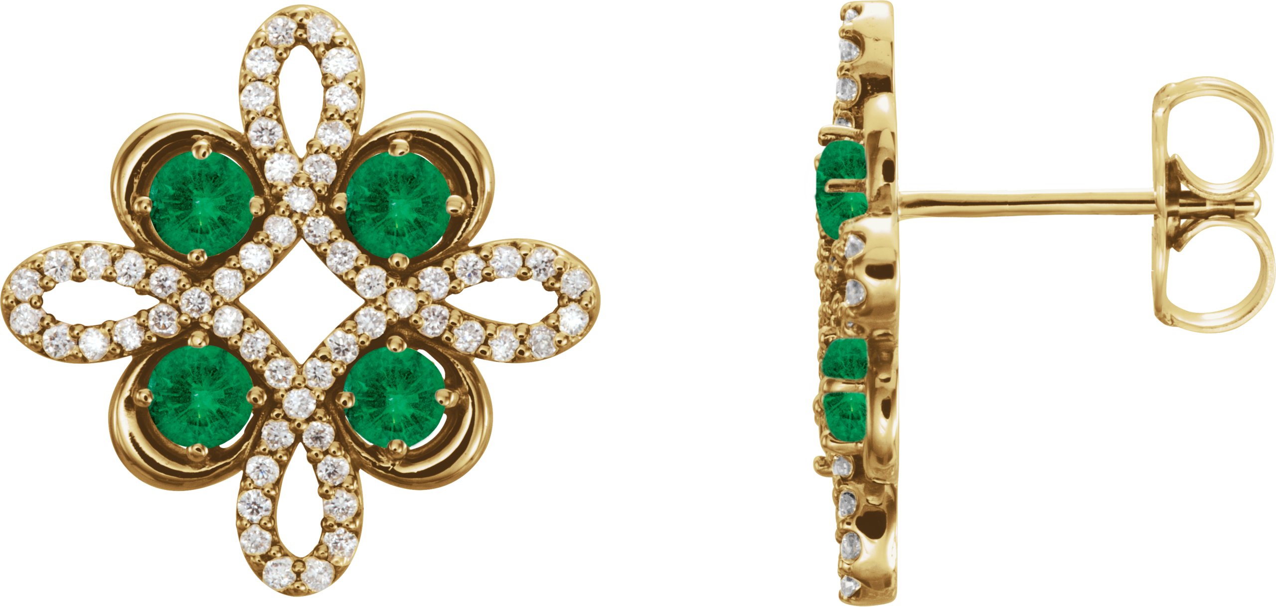 14K Yellow Emerald and .25 CTW Diamond Earrings