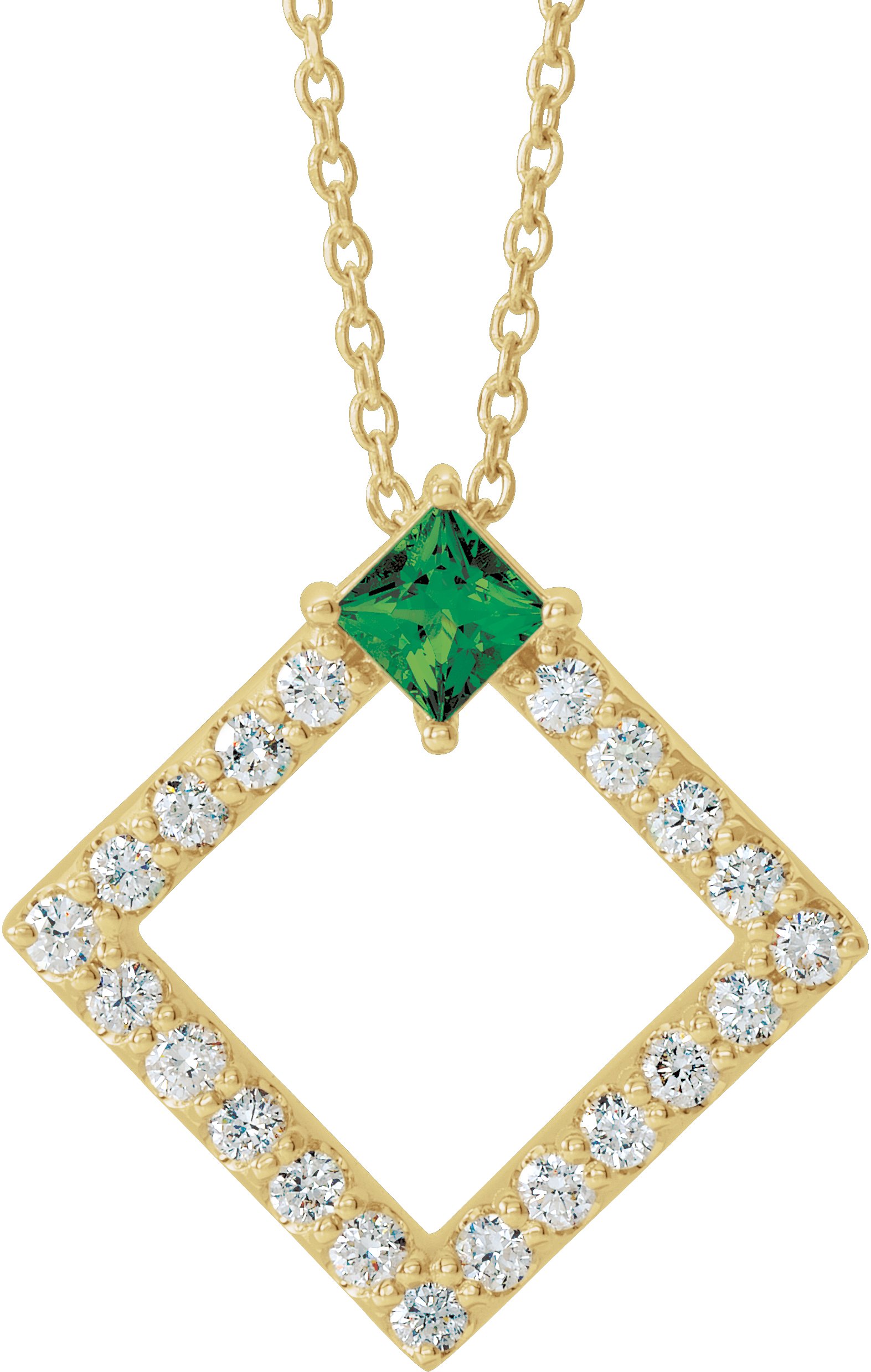 14K Yellow Emerald and .375 CTW Diamond 16 18 inch Necklace