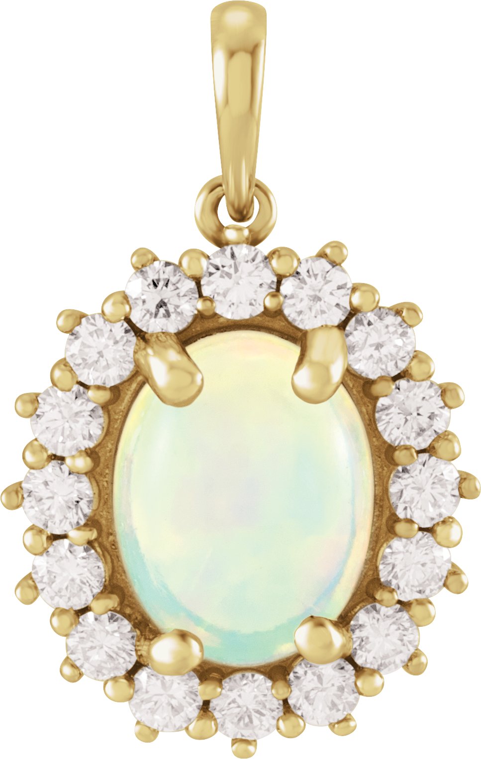 14K Yellow Ethiopian Opal & 1/2 CTW Diamond Pendant